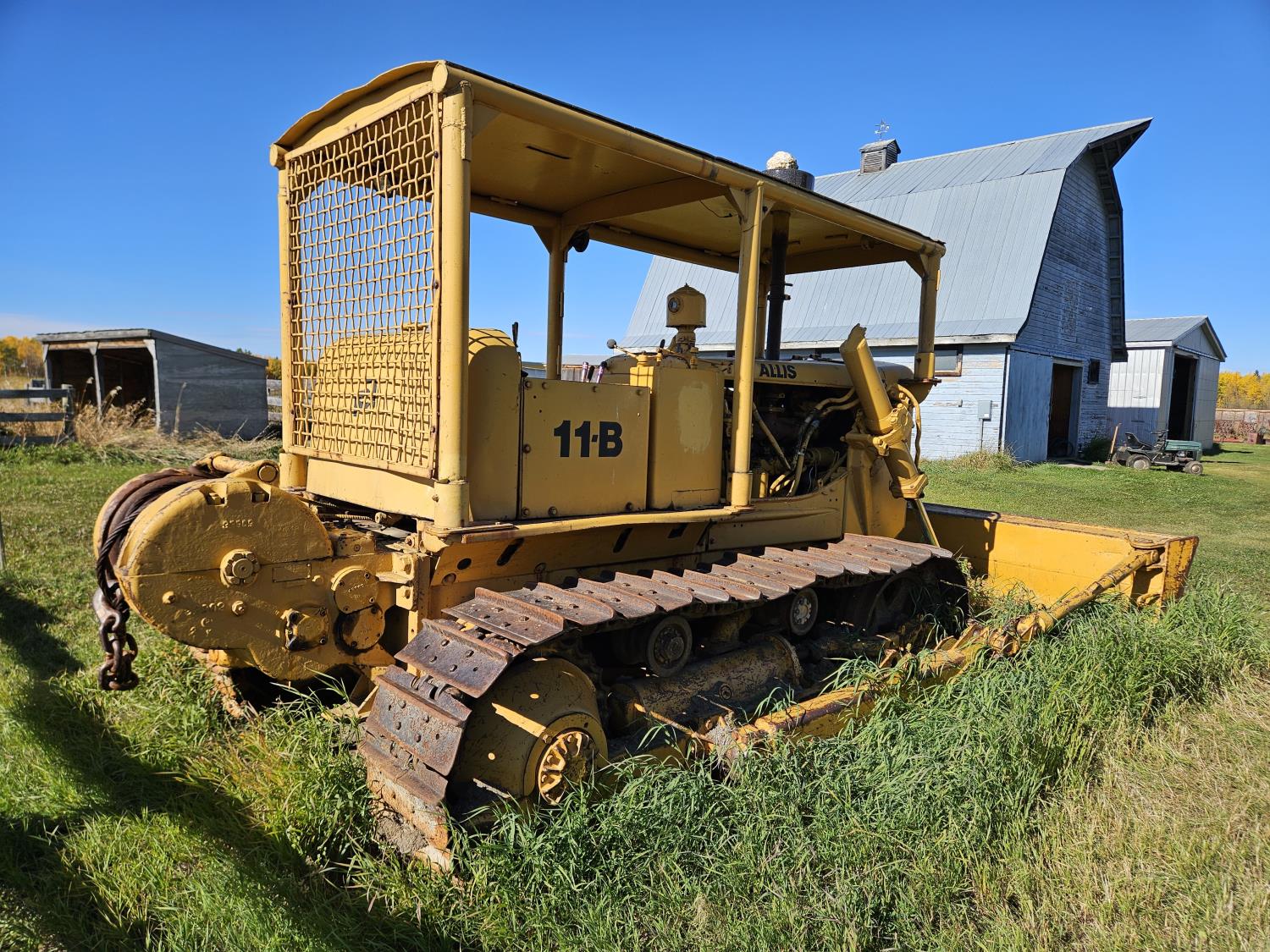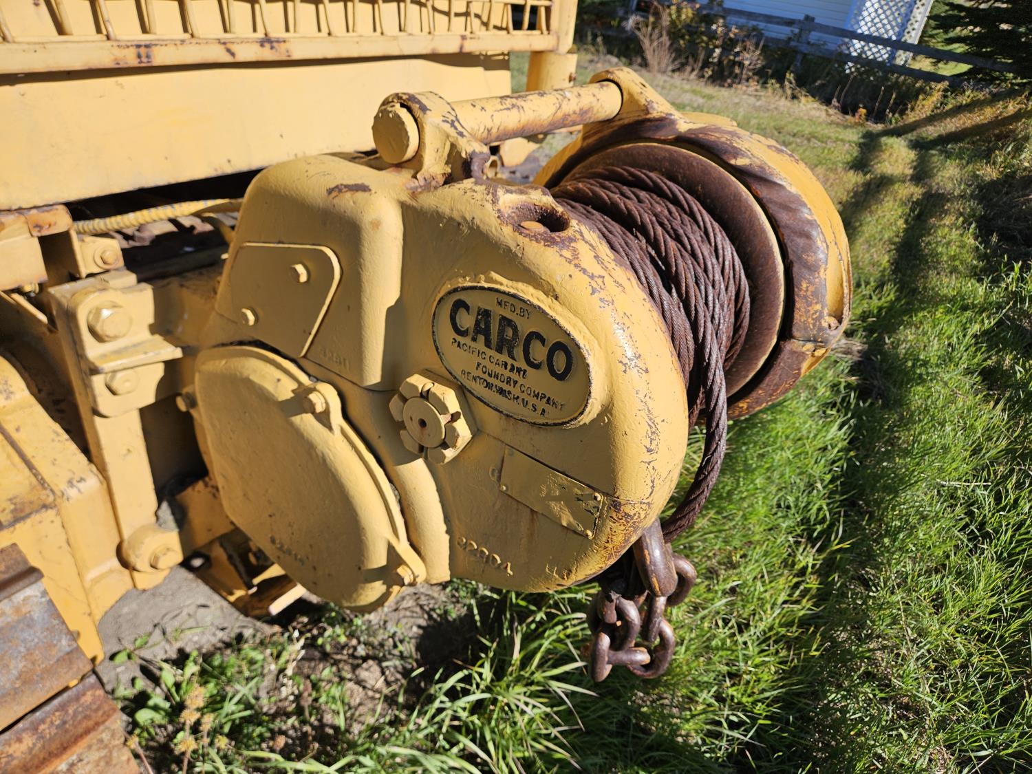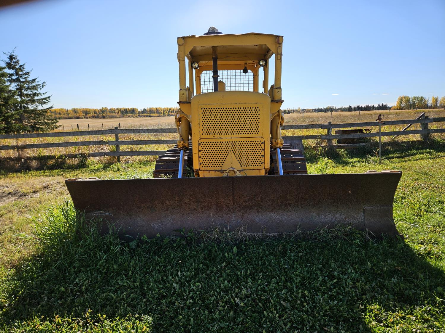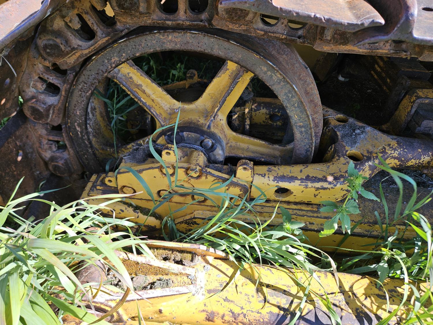 Open station, 6 cylinder diesel engine, 6 speed manual transmission, 12 Ft dozer, winch, was running when parked a few years ago., 20 inch track pads, single grousers
