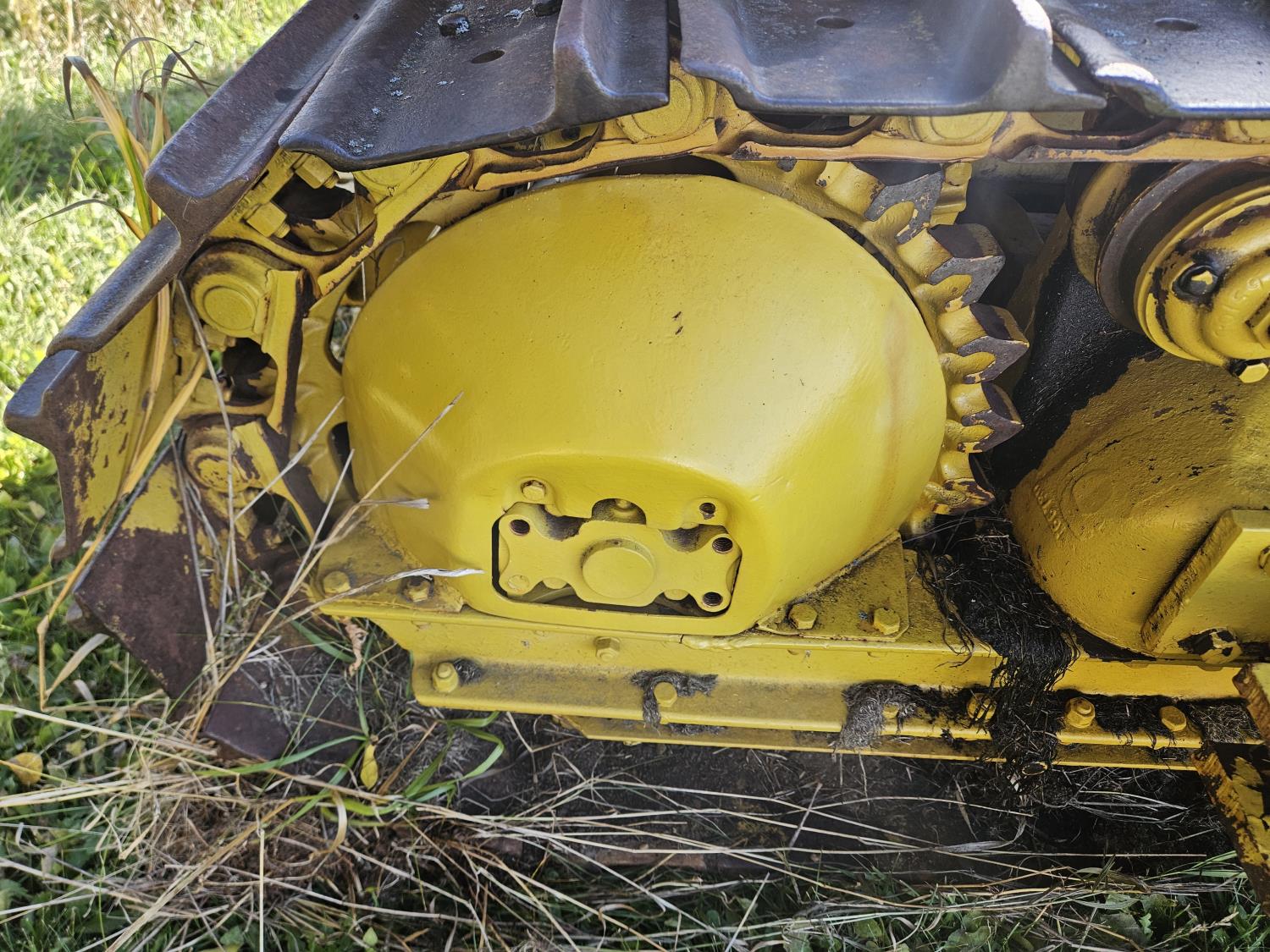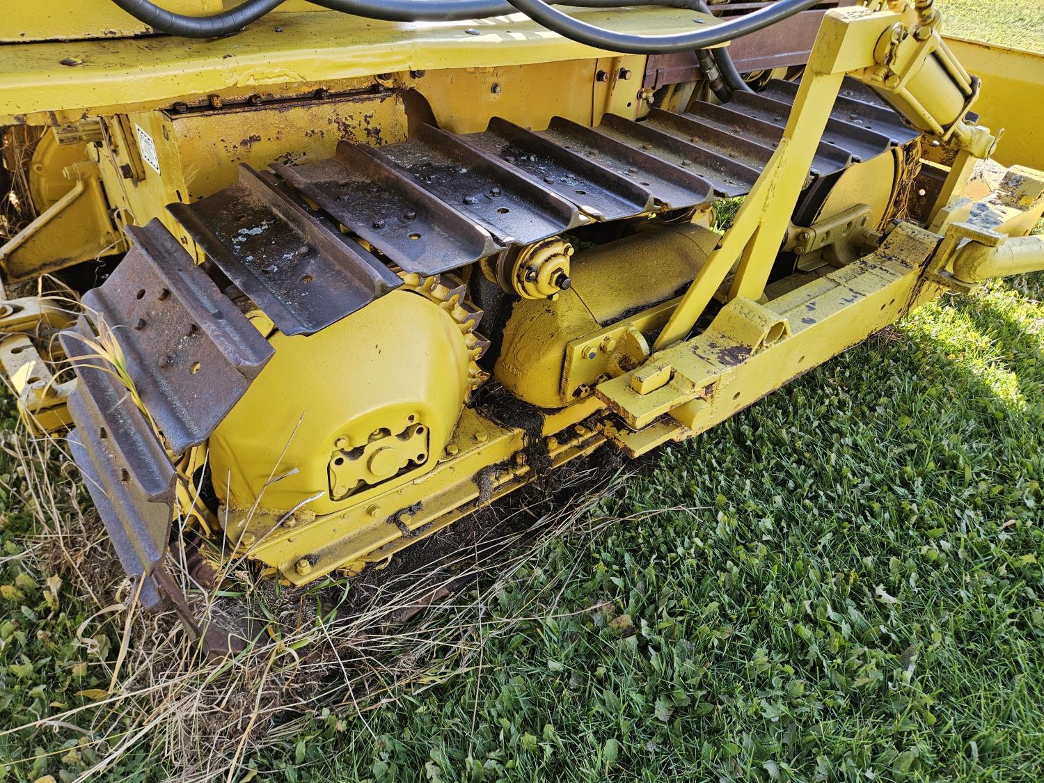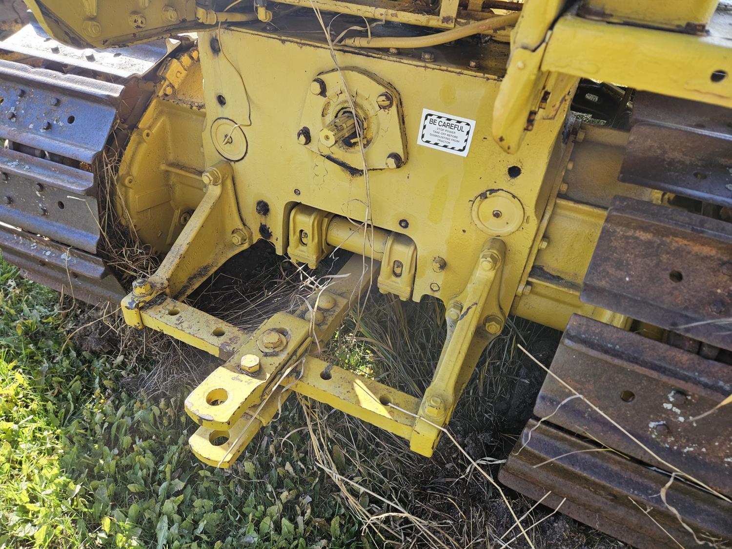 Open station, 4 cylinder diesel engine, 5 speed manual transmission, 94 inch dozer, drawbar, 540 pto, ran when parked, 16 inch track pads, single grousers
