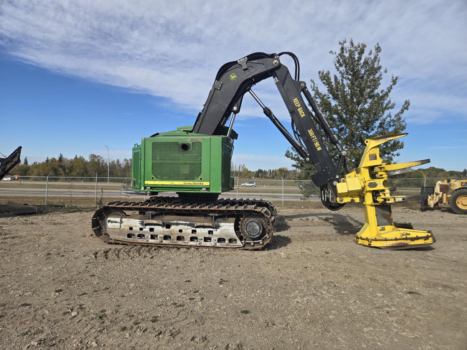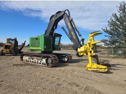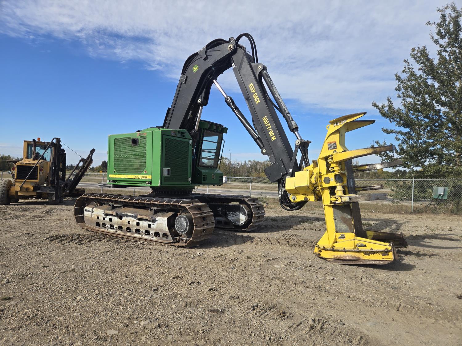 A/C, John Deere FR21B feller buncher, high rotation wrist, reduced tail swing, high and wide under carriage, 28 inch track pads, single grousers