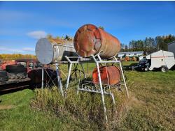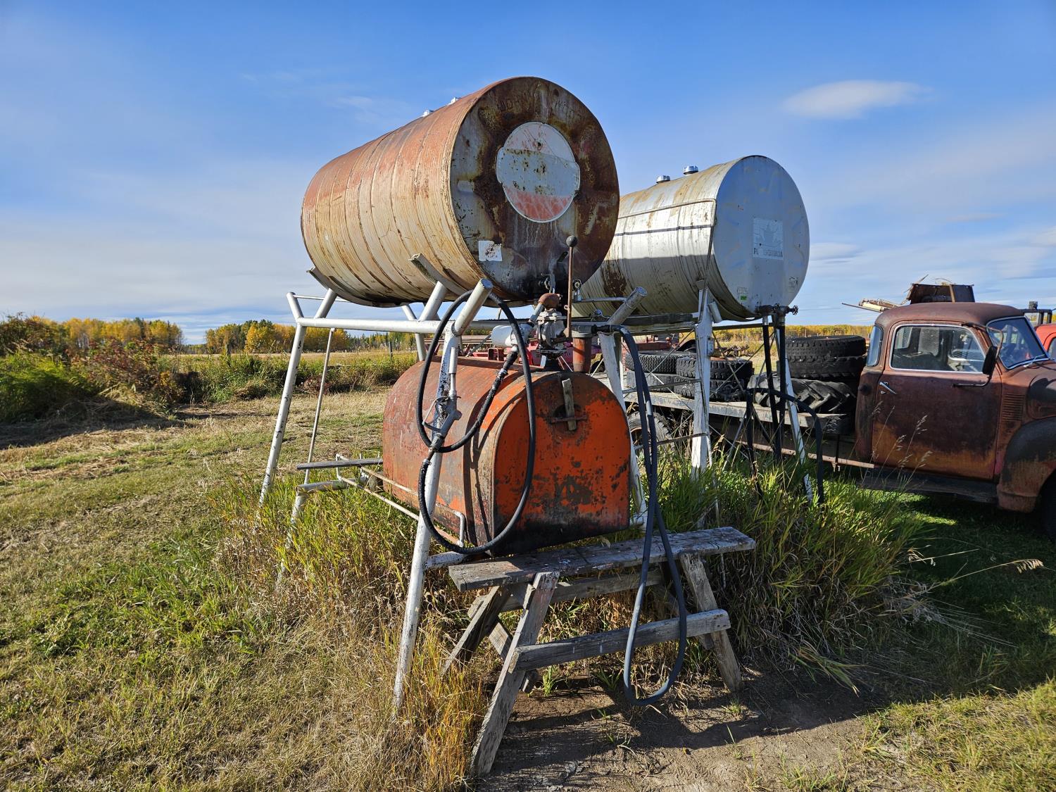 (2) 500 gallon fuel tanks and stands, slip tank, hoses, nozzles