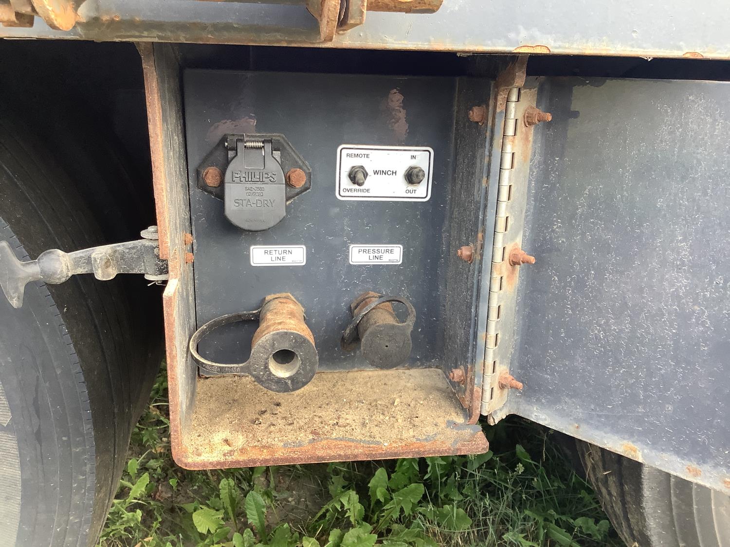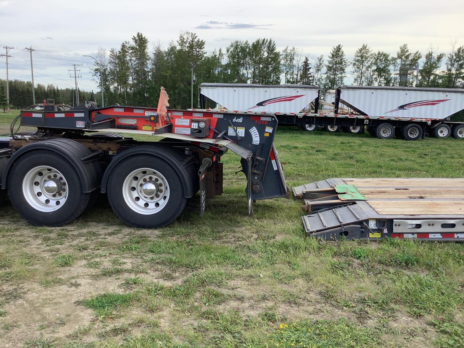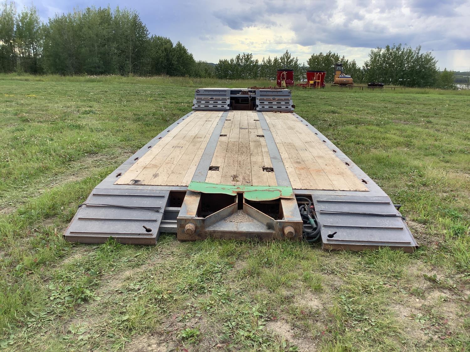 This trailer has good rubber, can haul any farm equipment or construction equipment has the 15 ft wide pull outs. Comes from a John Deere dealer in, SK, they went to a different unit for hauling their equipment.