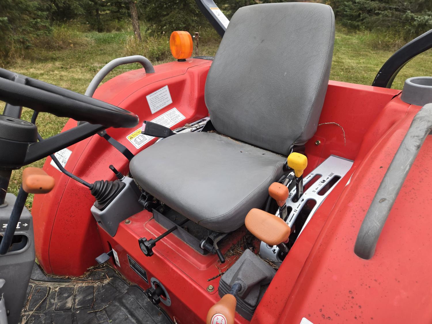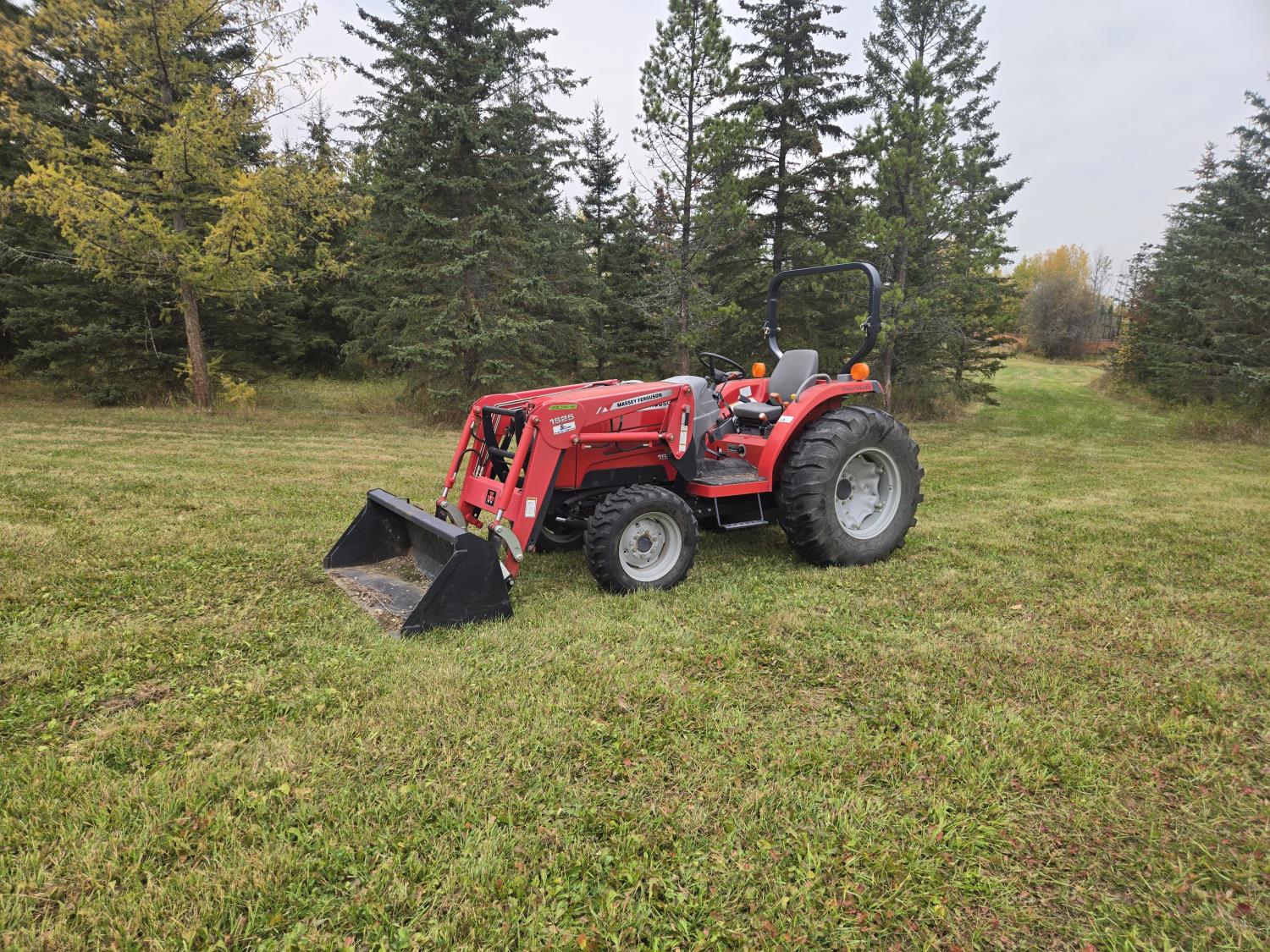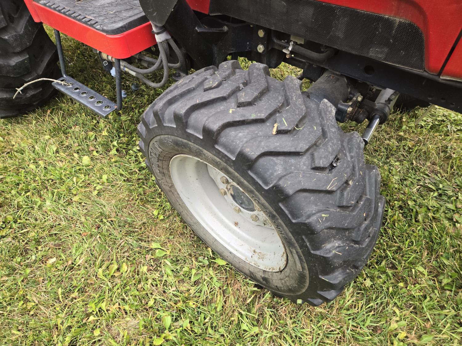 Massey Ferguson 1525 loader, Q/A, 66 inch bucket, Iseki 1.5 L 3 cylinder 33 HP, engine, 26 PTO HP, 12 speed manual transmission, shuttle shift, rear differential lock, joystick, 540 PTO, 3 point hitch, 10-16.5 front tires, 14.9-24 rear tires