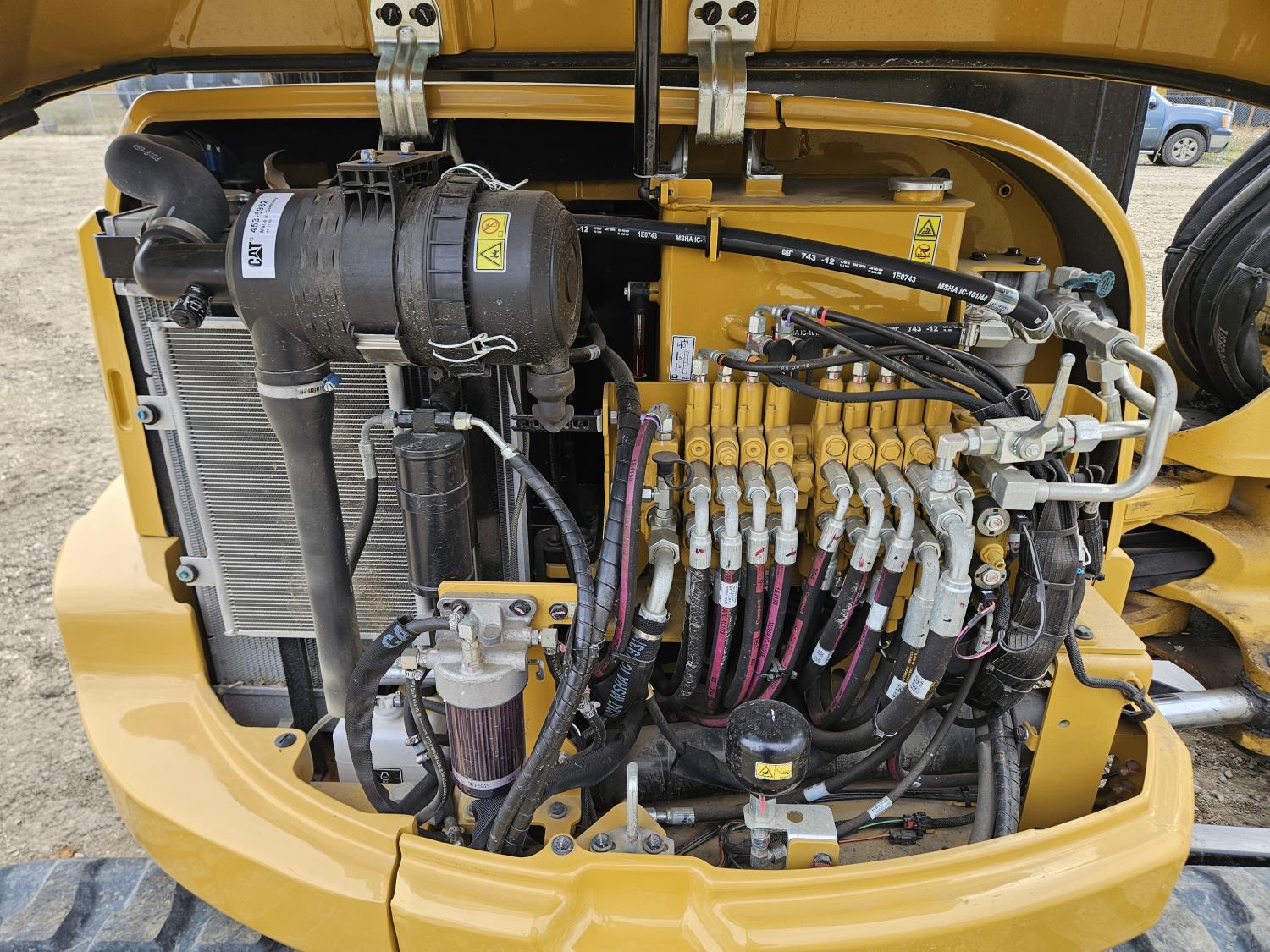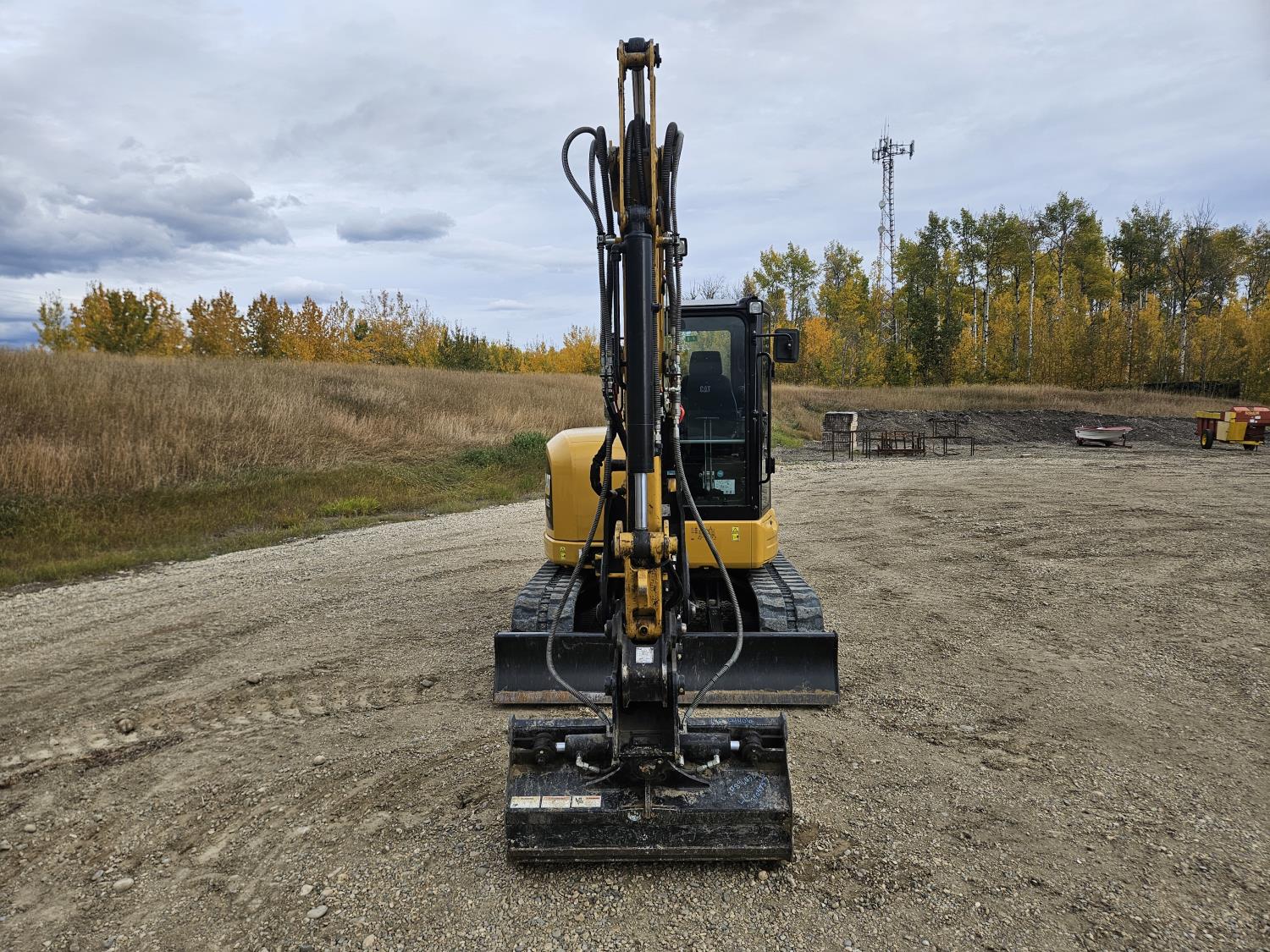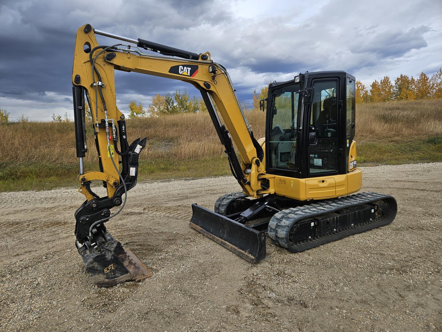 Enclosed cab, A/C, pilot controls, cab heater, radio, hydraulic Q/C coupler, hydraulic thumb, 68 inch stick, backfill blade, 44" twist-a-wrist bucket, 22" dig bucket, 16 inch rubber tracks