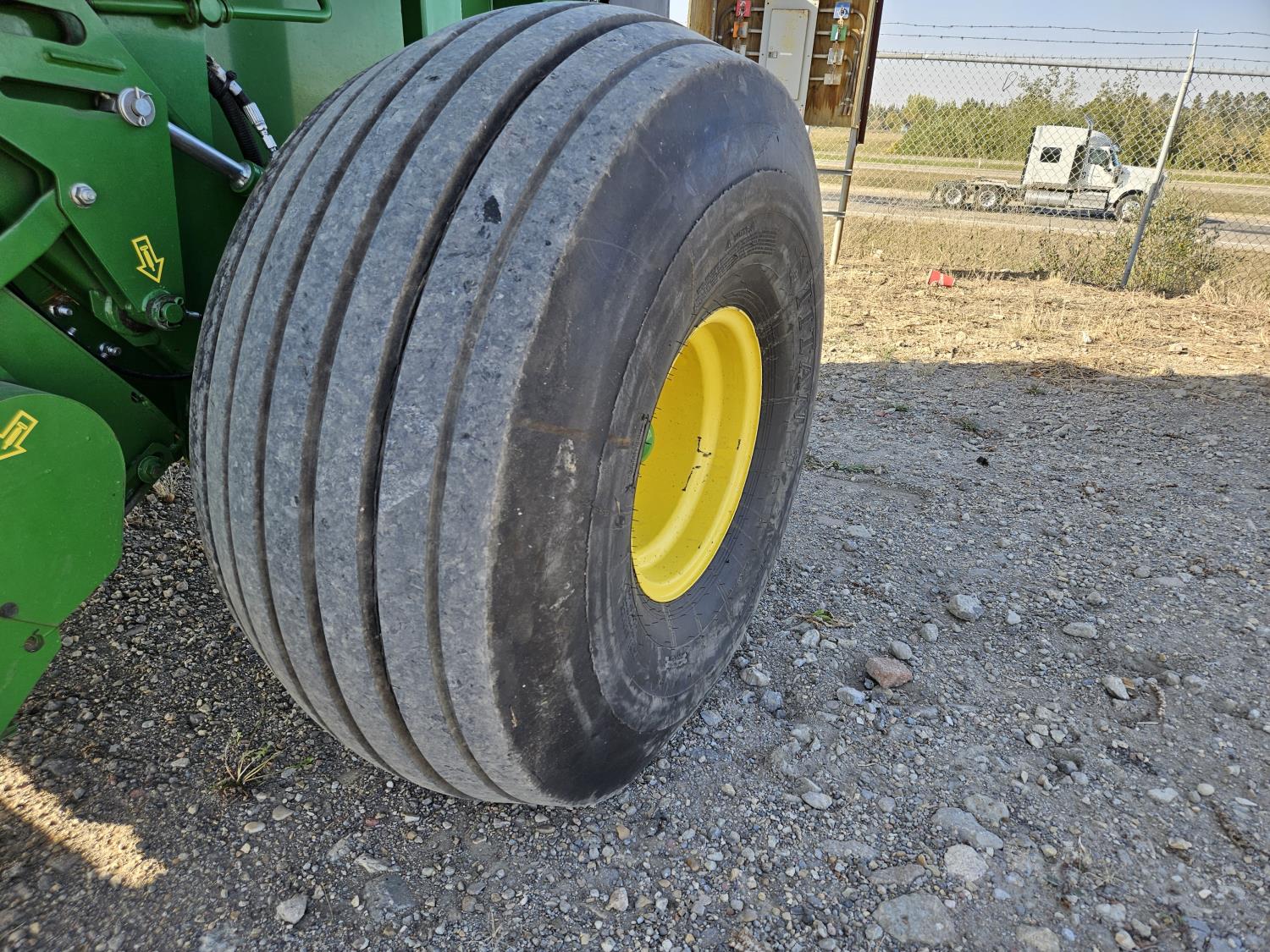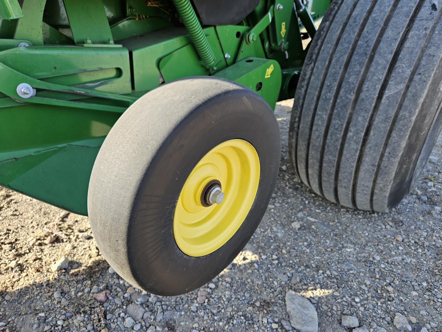 1000 PTO, Mega Wide Pickup, hydraulic lift, (2) gauge wheels, 5x6 ft bale size, twine tie or net wrap, monitor, kicker, 25,000 bale count, swath depressor, 21.5L-16.1 tires