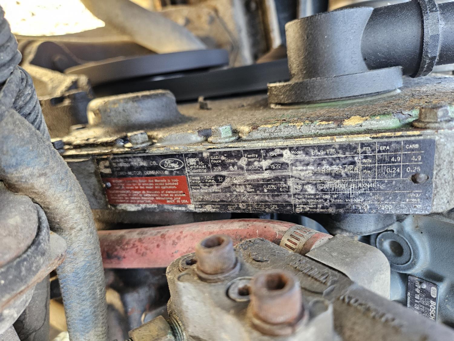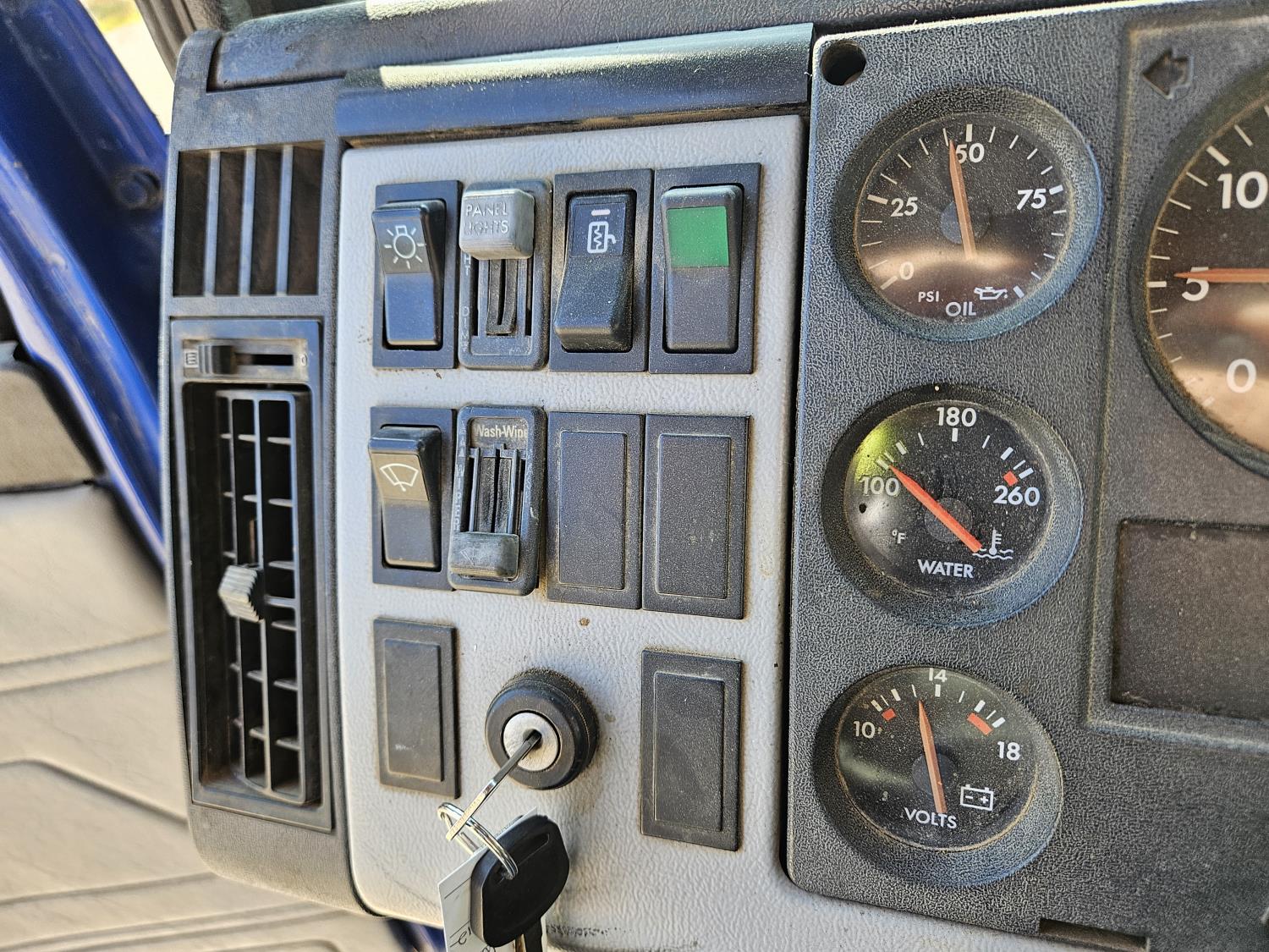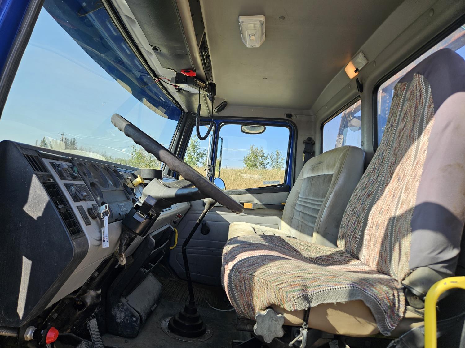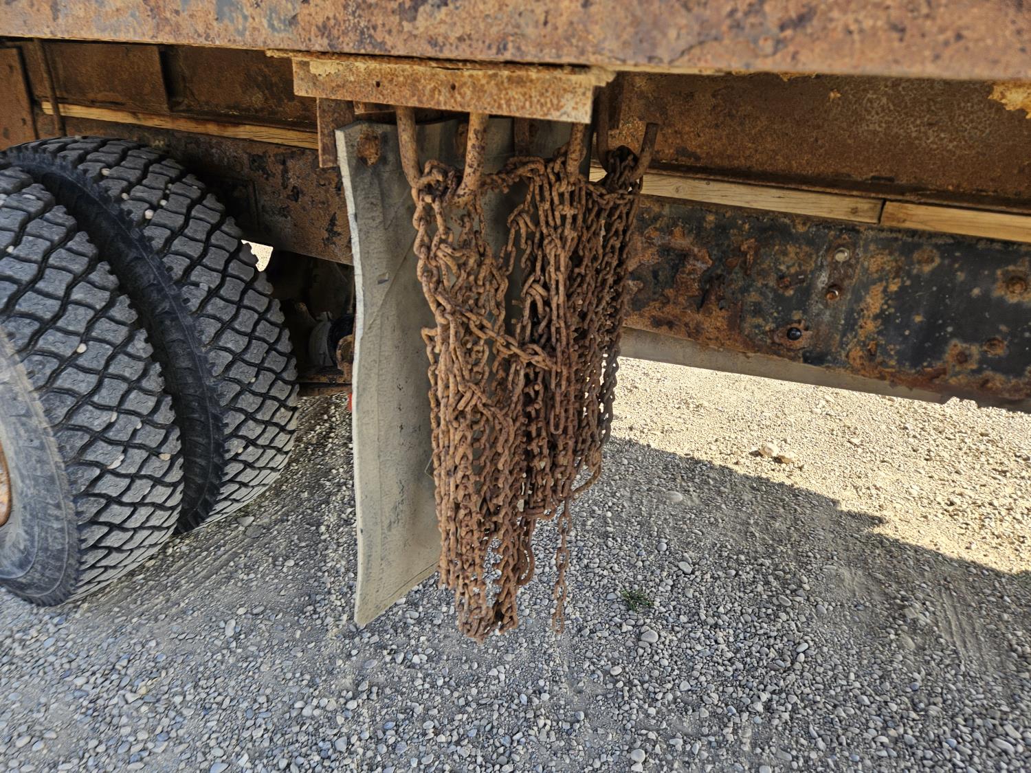 Cummins 5.9 L 6 cylinder 175 HP diesel engine, 6 speed manual transmission, radio, CB radio, steel headache rack, steel tool boxes, 103 inch x 18 ft deck, chain holders, air ride suspension, 12,000 lb front axle, 22,700 lb rear axles, 11R22.5 tires