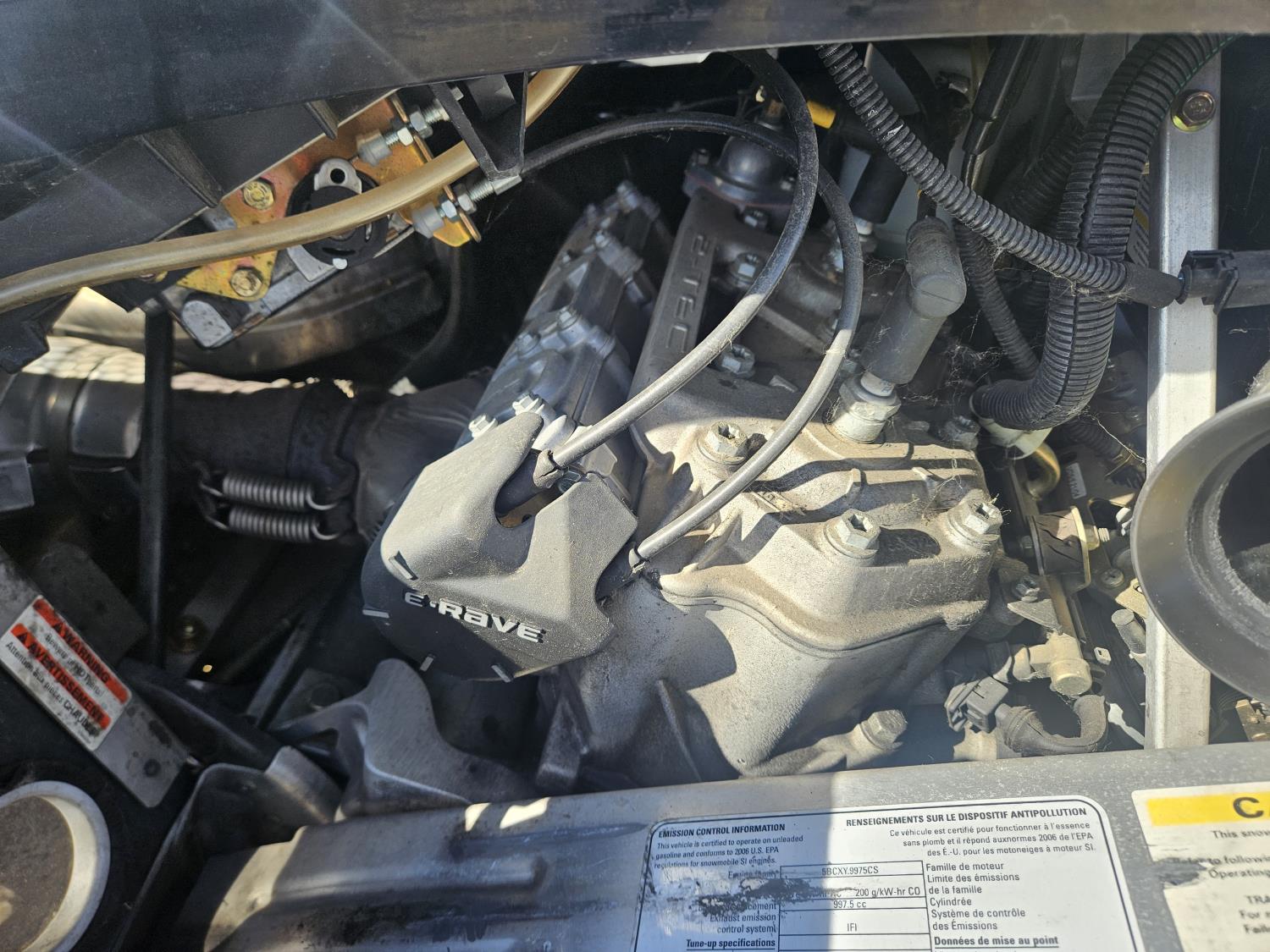 1000 cc 2 cylinder fuel injected 2 stroke liquid cooled engine, electric start, reverse, hand and thumb warmers, 2 up seat with backrest, high rise handlebars, 162 inch long track, 2.5 inch paddles