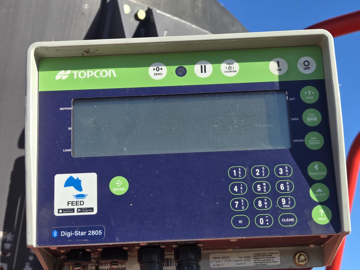 1000 PTO, right conveyor discharge, hydraulic discharge gate, Digi Star 285 Topcon scales, walking beam axle, 550/45-22.5 tires