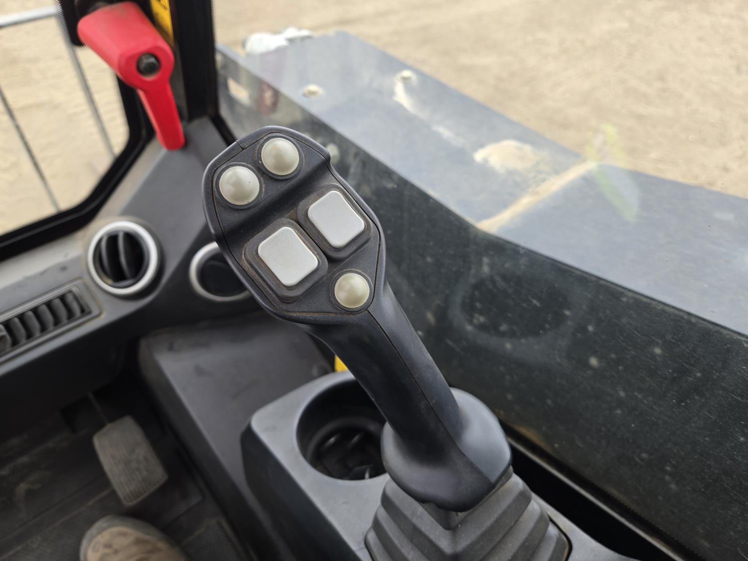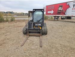Enclosed cab, A/C, air ride seat, heated seat, control pattern change, rear view cameras, diesel engine, 2 speed transmission, 48 inch pallet forks, electric Q/C coupler, 1 auxiliary hydraulics, high flow hydraulics, counter weight, 18 inch rubber tracks