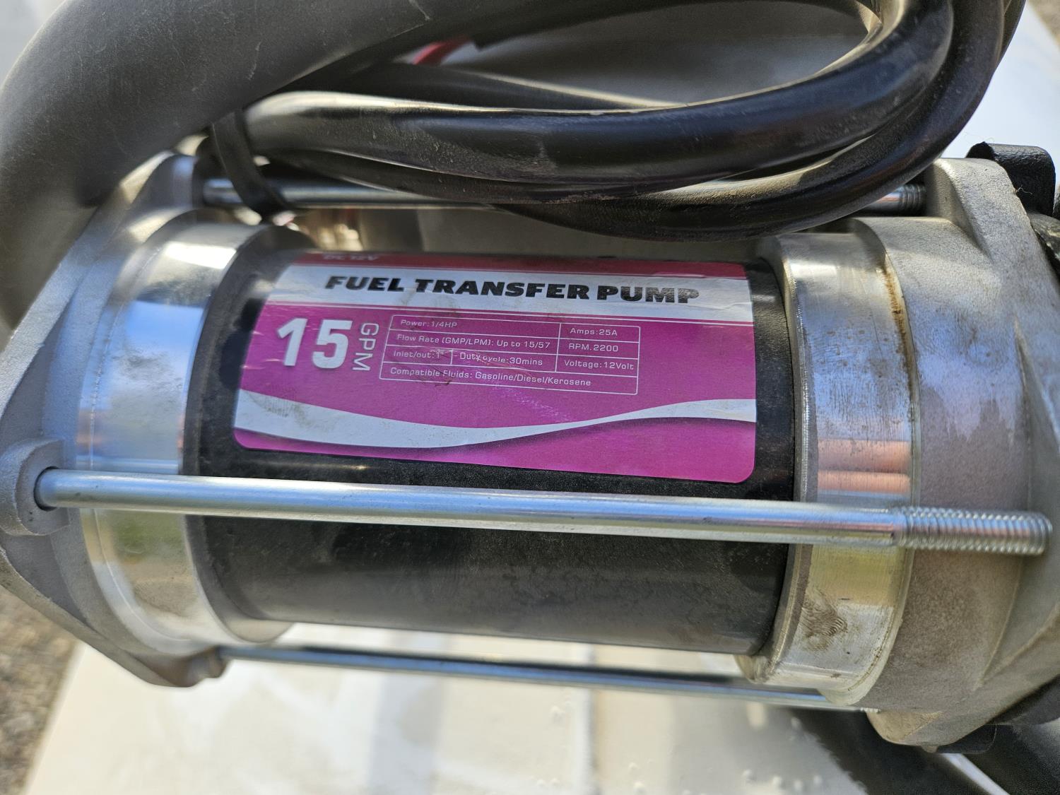 500 gallon, 15 GPM 12 volt electric fuel pump, hose and nozzle