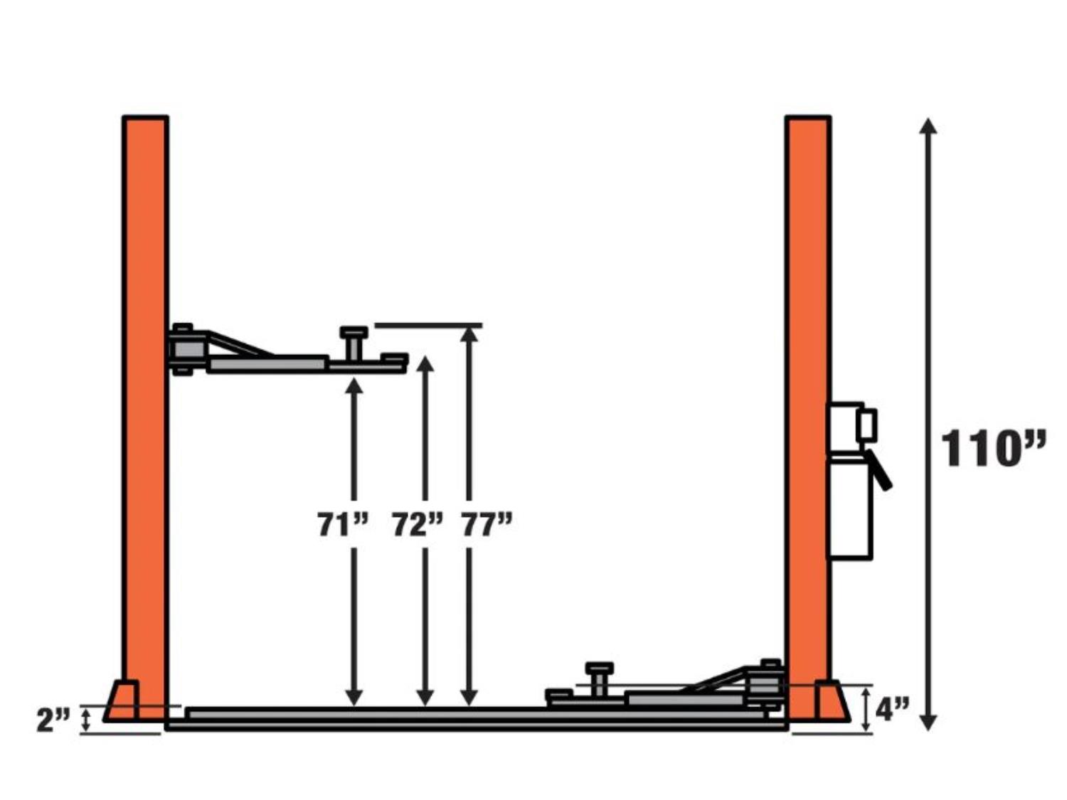 Symmetric arms, 77 inch lift height, dual-point lock release