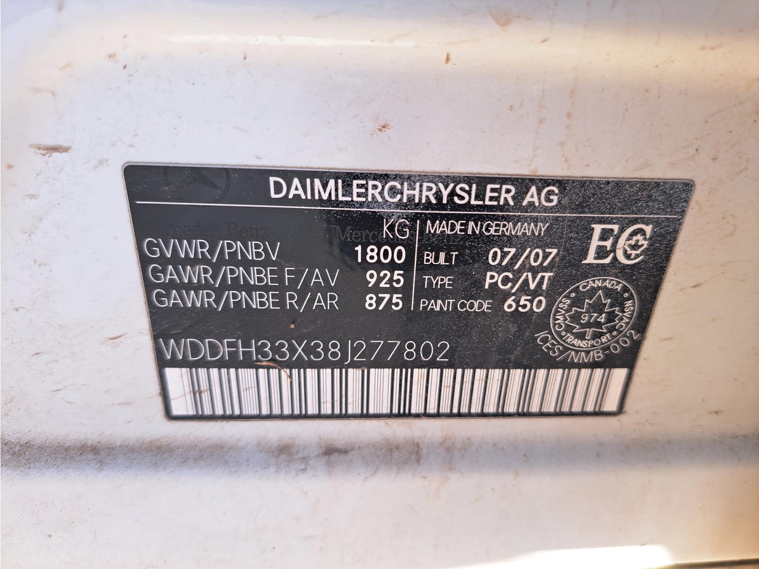 - WDDFH33X38J277802