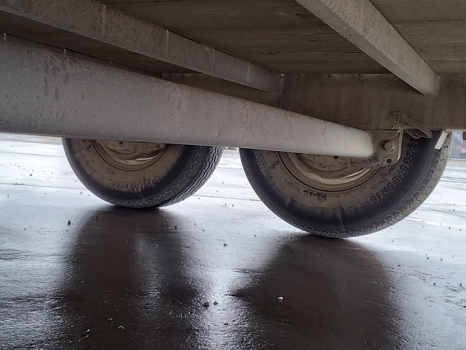77 inch wide deck, 36 inch beaver tails, wood deck, stand up ramps, rub rails, stake pockets, 7000 lb axles, 235/85R16 tires