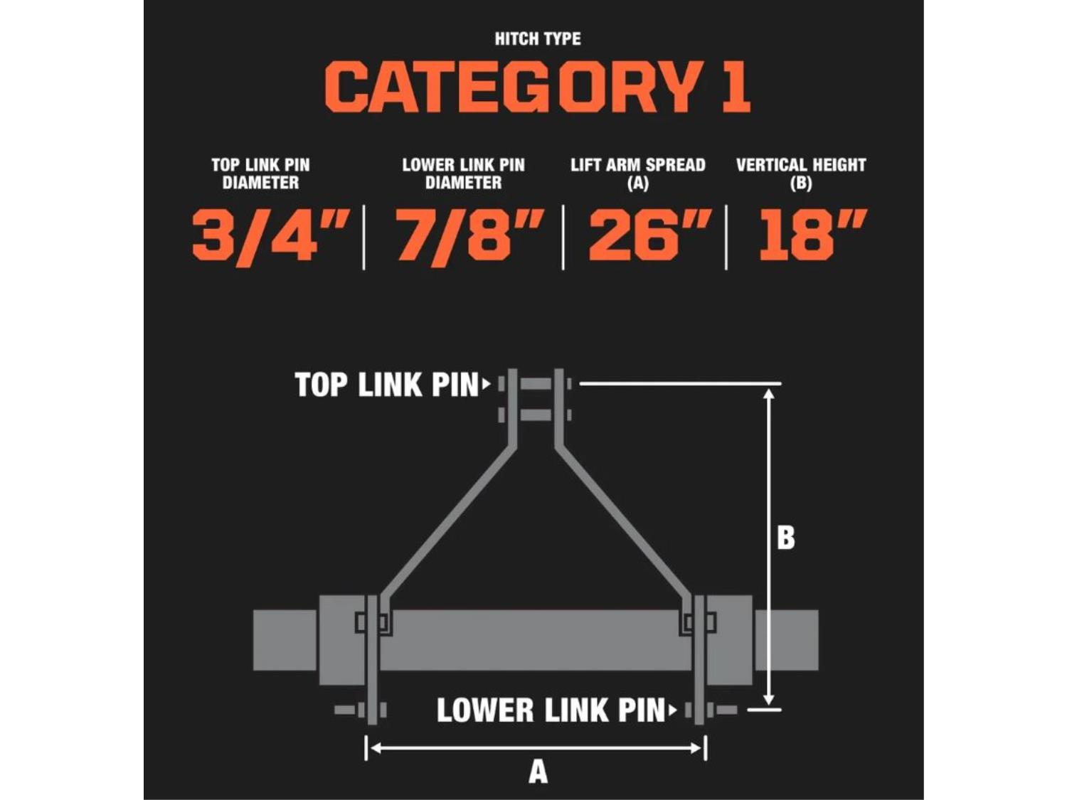 4 inch chipping capacity, category 1 hookup, 30-50 HP tractor, PTO shaft