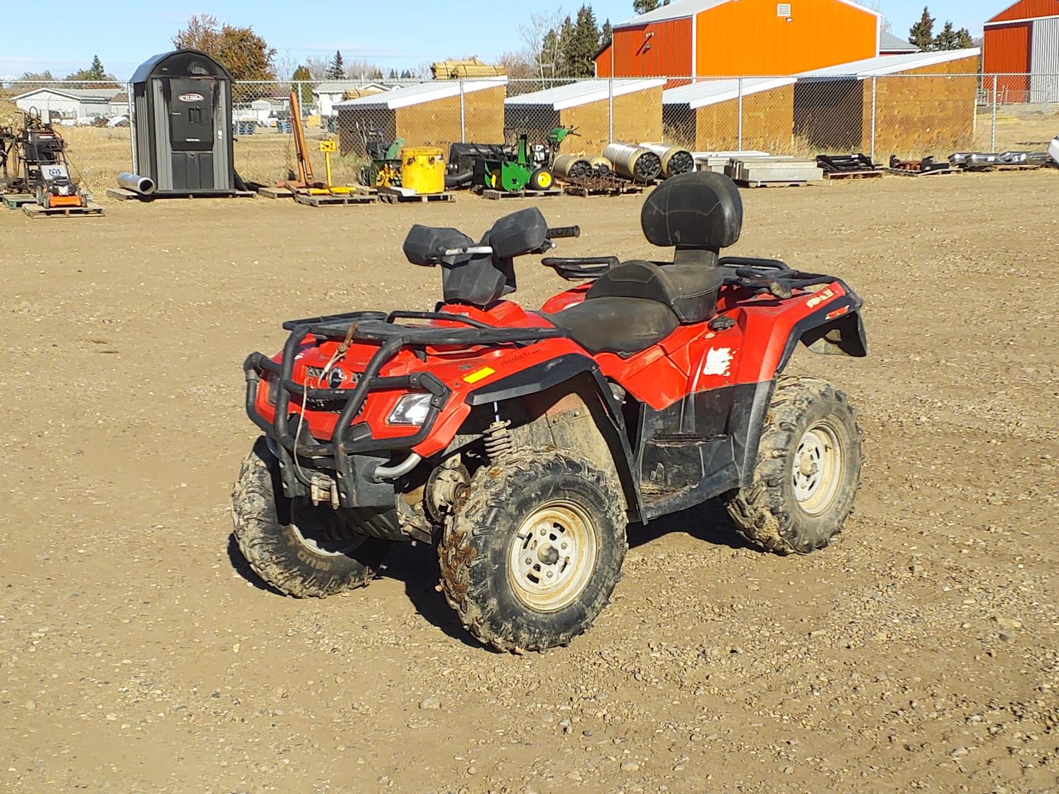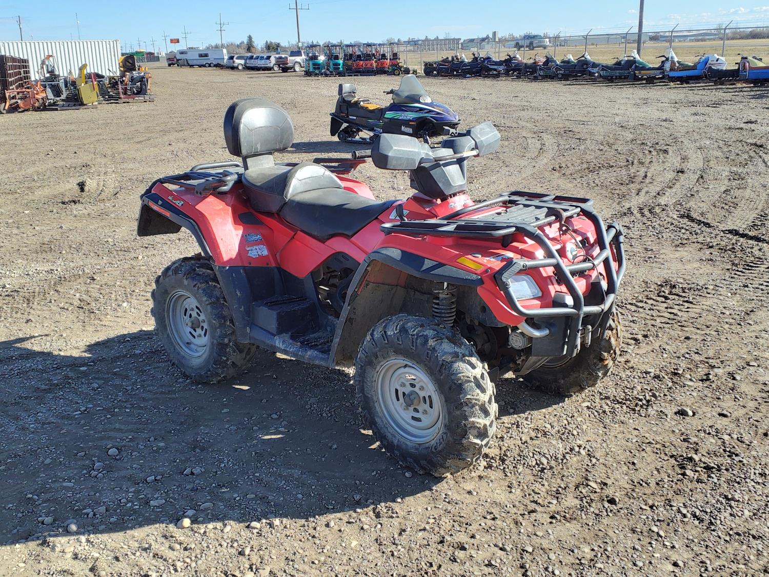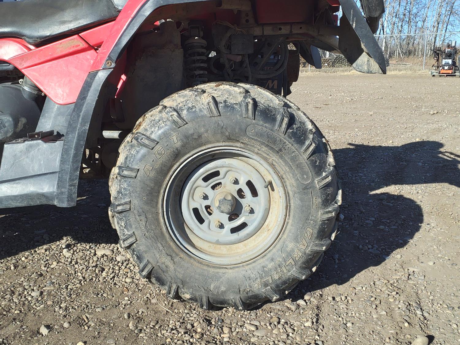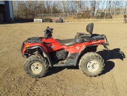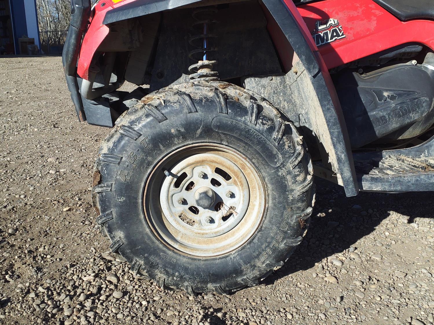 400 cc water cooled engine, CVT transmission, Hi/Lo range, reverse, hitch, front and rear racks, front winch, 25X8-12 front tires, 25X11R12 rear tires