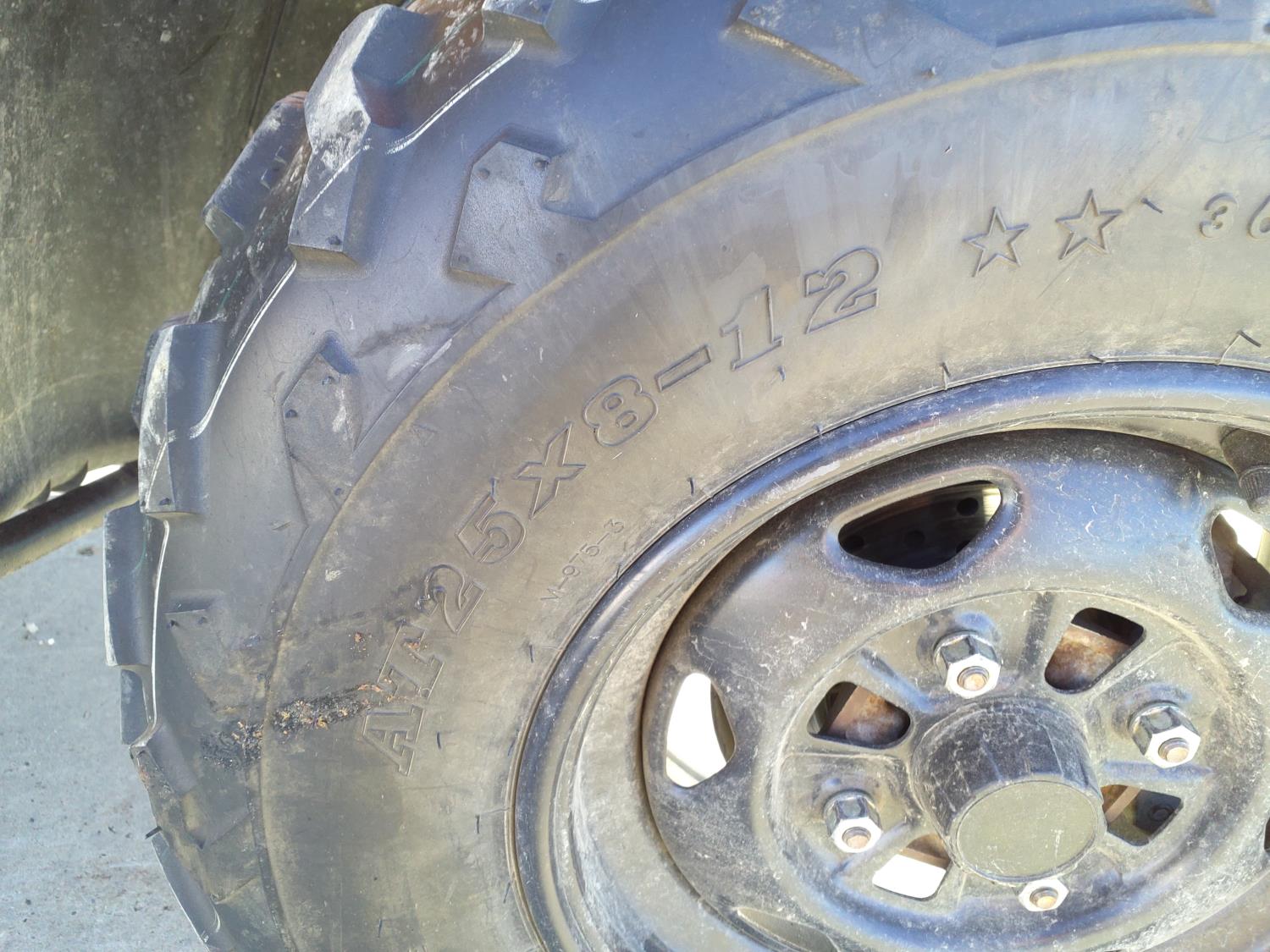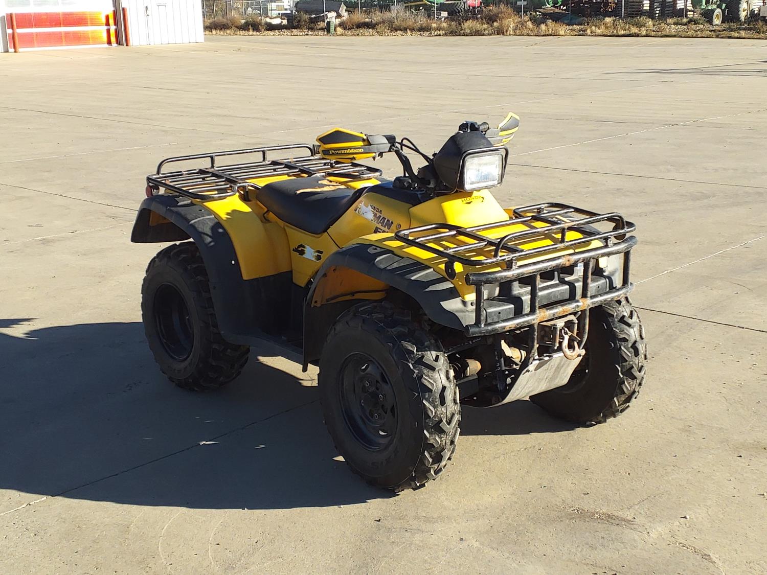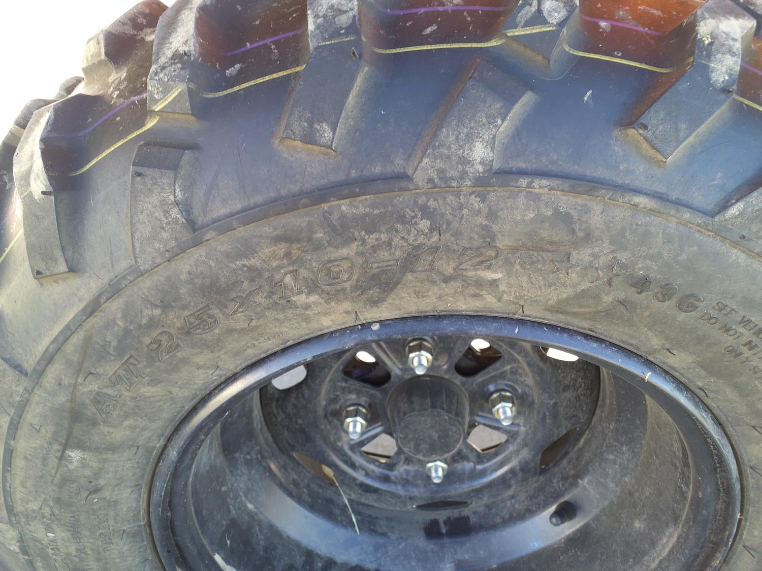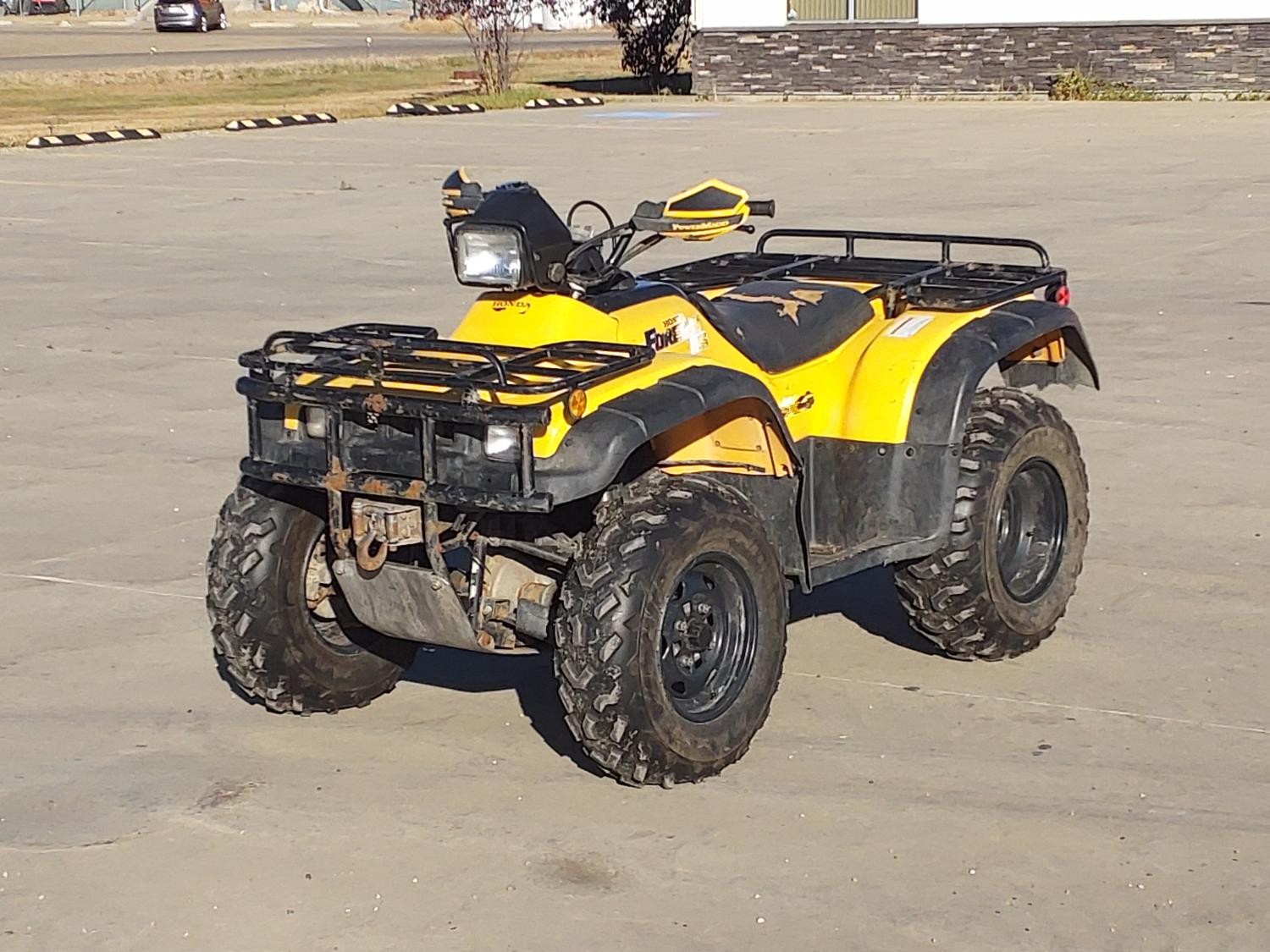 450 cc water cooled engine, automatic transmission, reverse, hitch, front and rear racks, front winch, 25X8-12 front tires, 25X10-12 rear tires