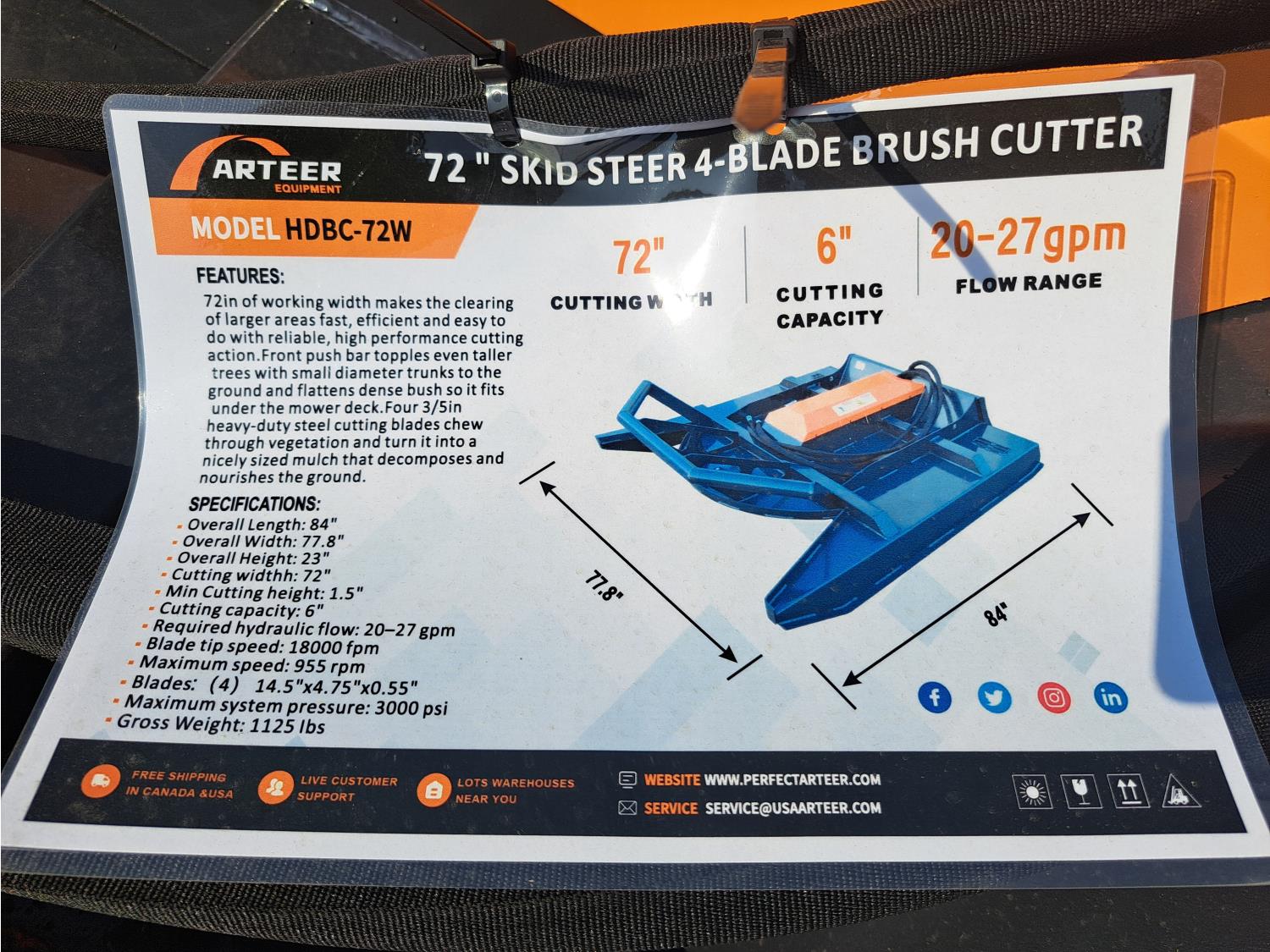 459 Arteer HDBC-72W 72 Inch Skid Steer 4 Blade Brush Cutter (Unused)