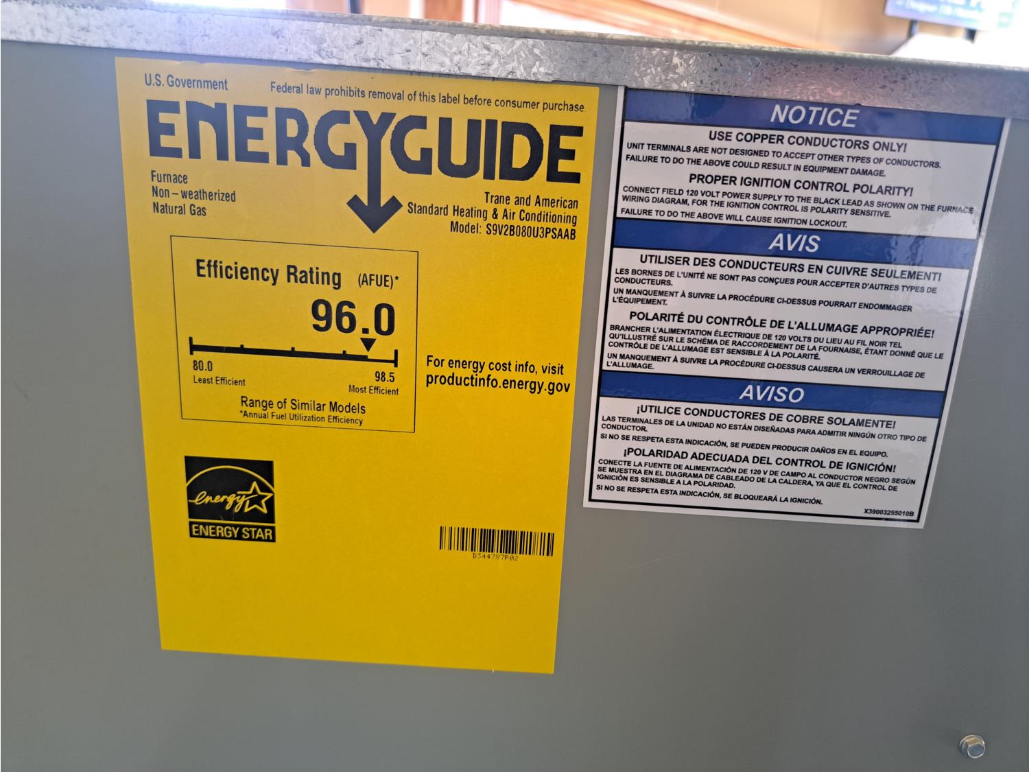 144 Trane S9V2B080 High Efficient 2 Stage Furnace