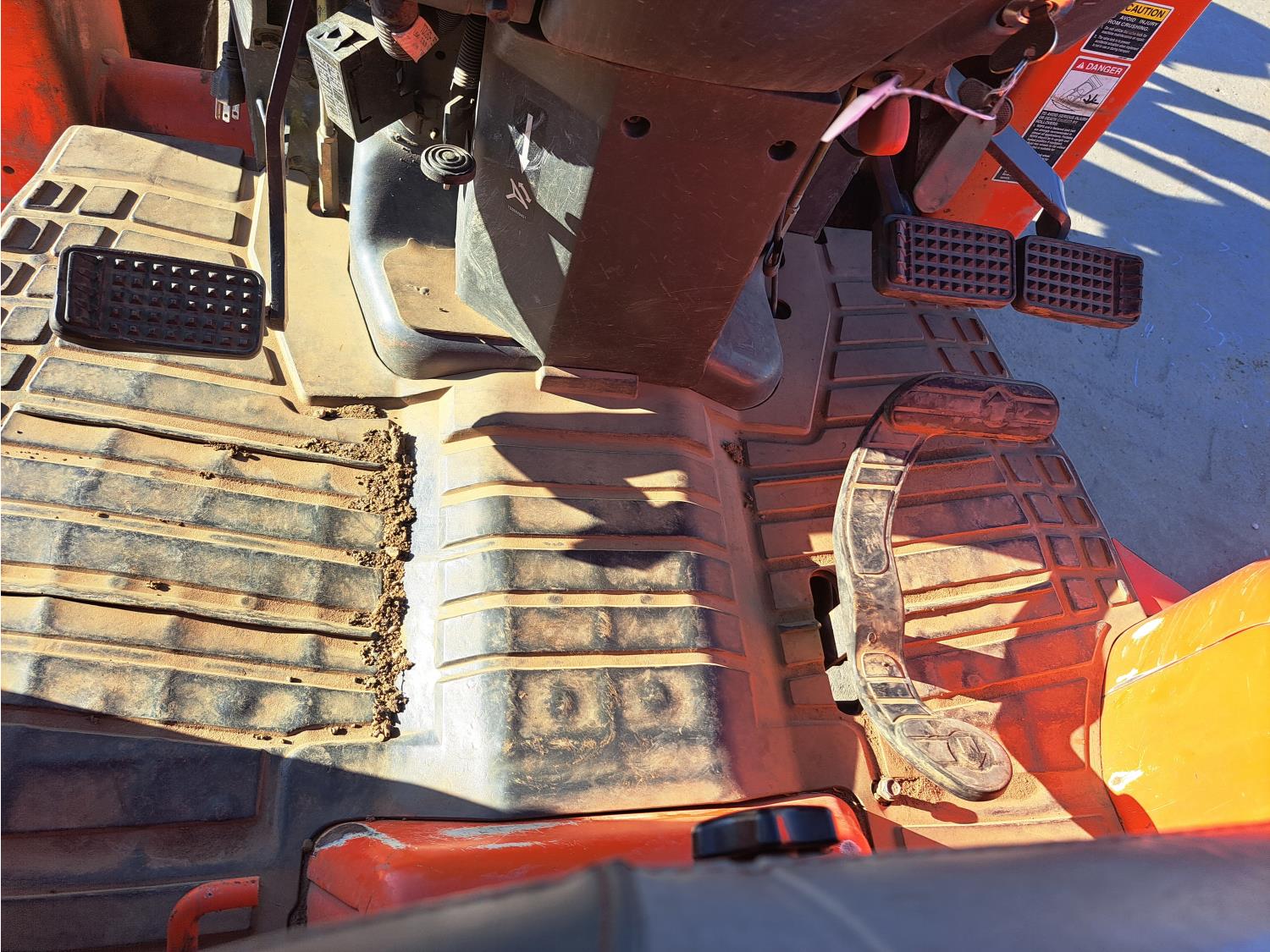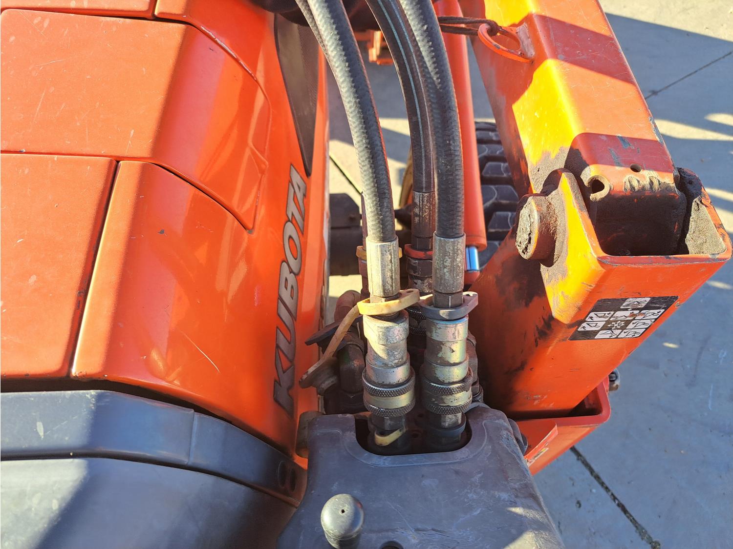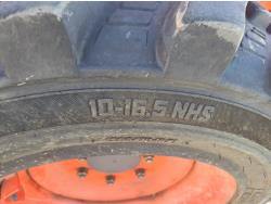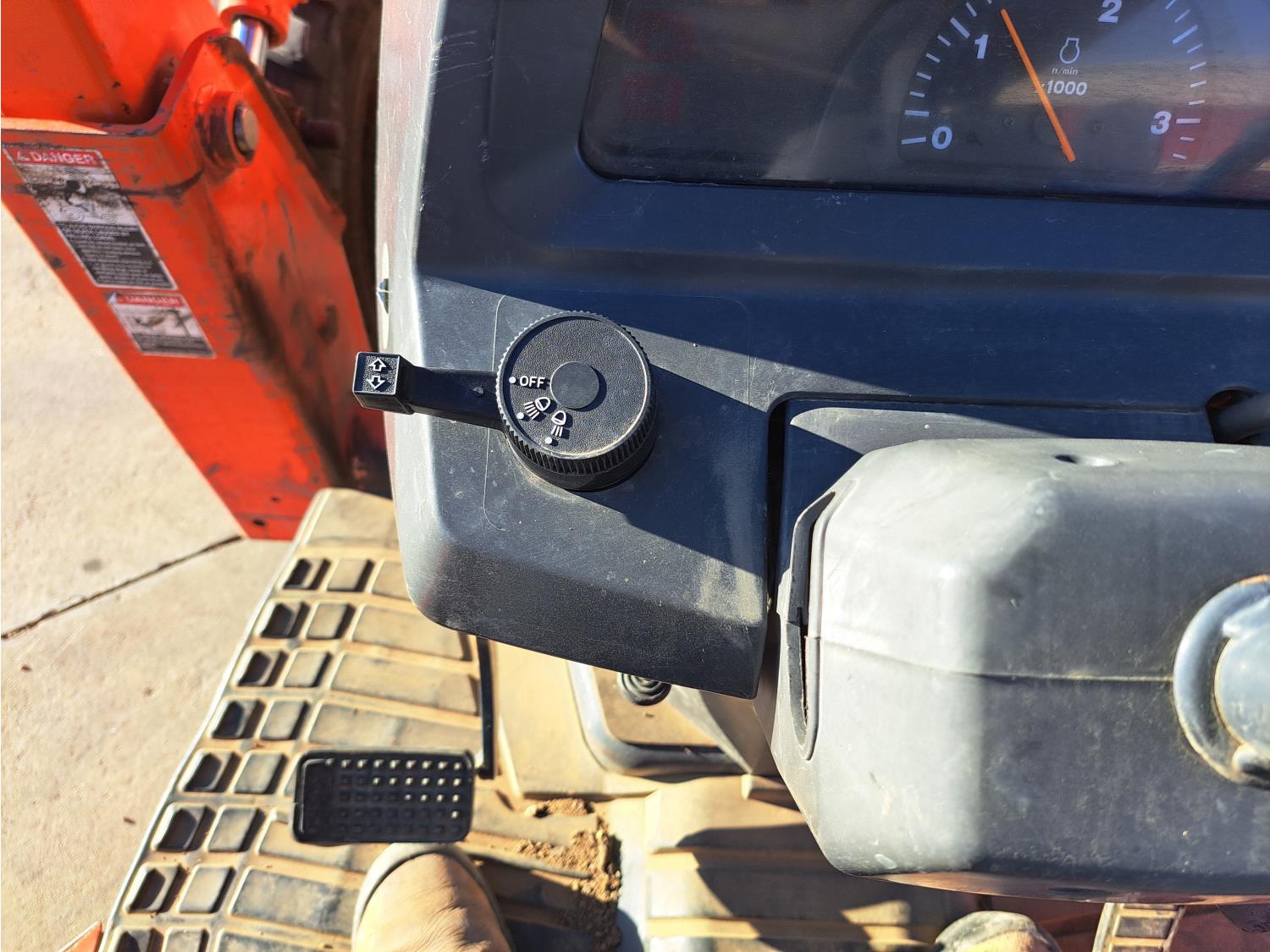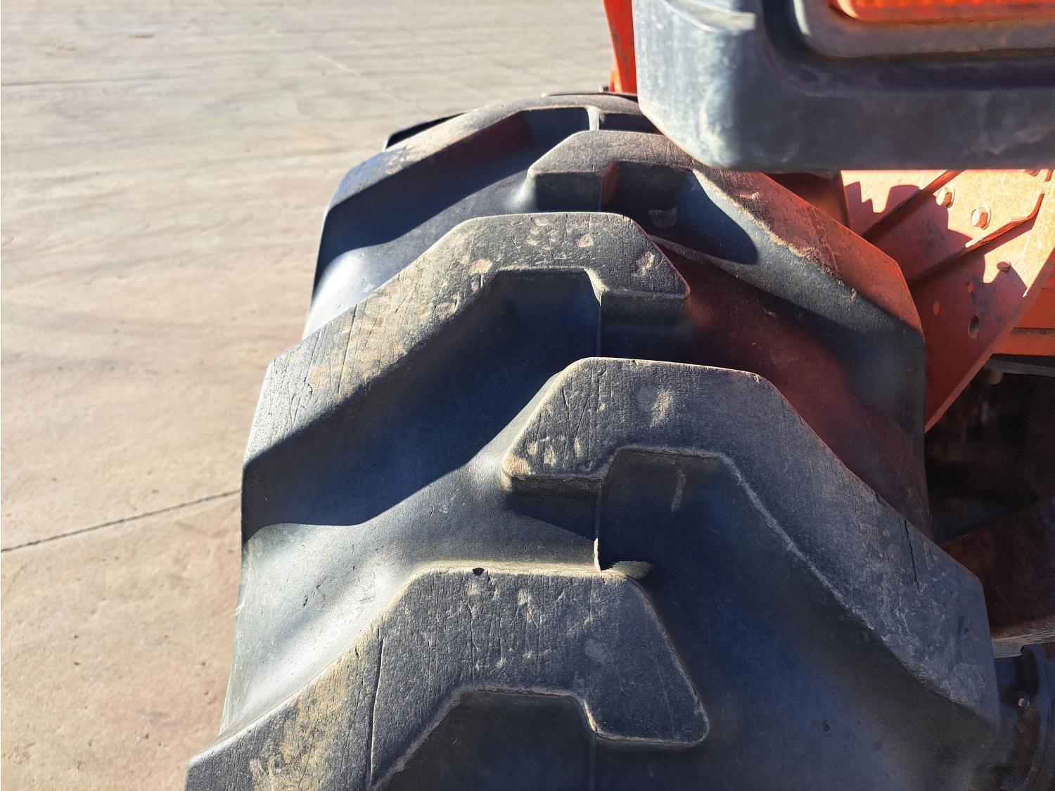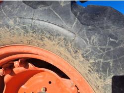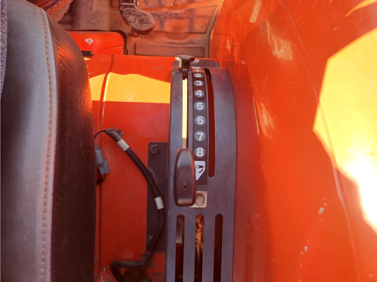 Kubota LA723 loader, 71 inch bucket, Kubota 1.6 L 3 cylinder 35 HP, diesel engine, 28 PTO HP, hydro 3 range transmission, open station platform, joystick, 540 PTO, 3 point hitch, 10-16.5 front tires, 420/70-24 rear tires