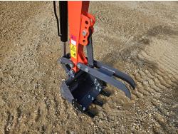 Open station, 420cc gas engine, 16 inch dig bucket, manual thumb, 32 inch stick, backfill blade, 7 inch rubber tracks