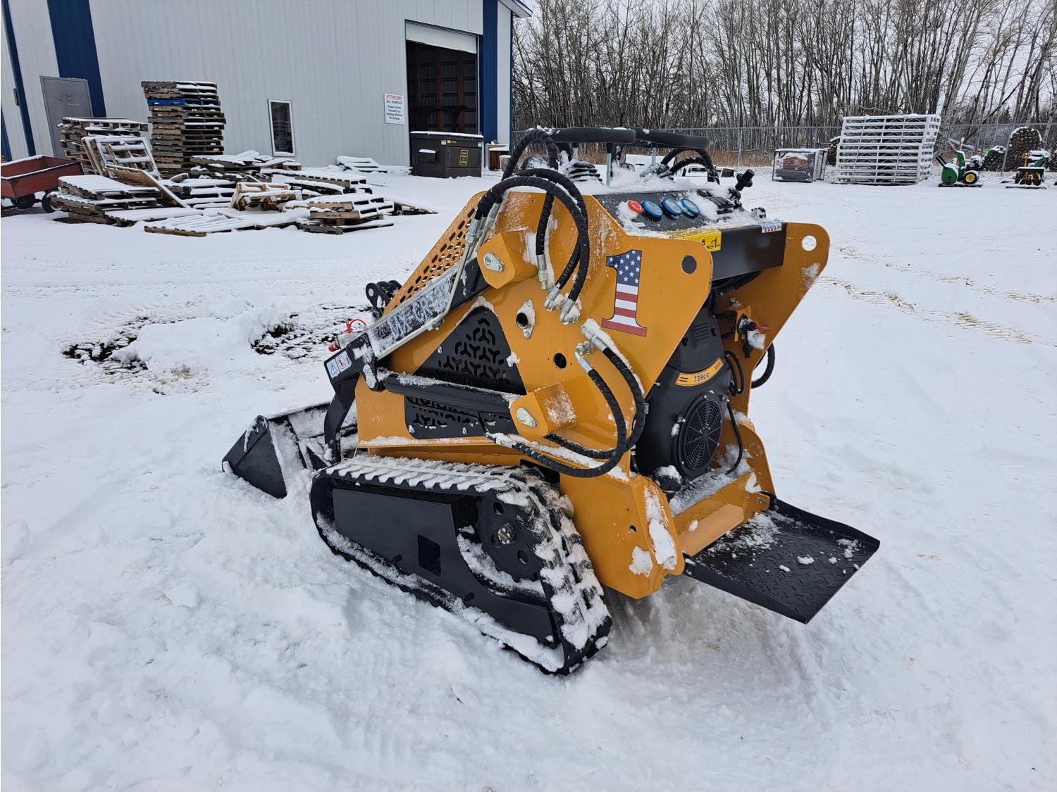Open station, 739cc gas engine, 33 inch smooth bucket, auxiliary hydraulics, 7 inch rubber tracks