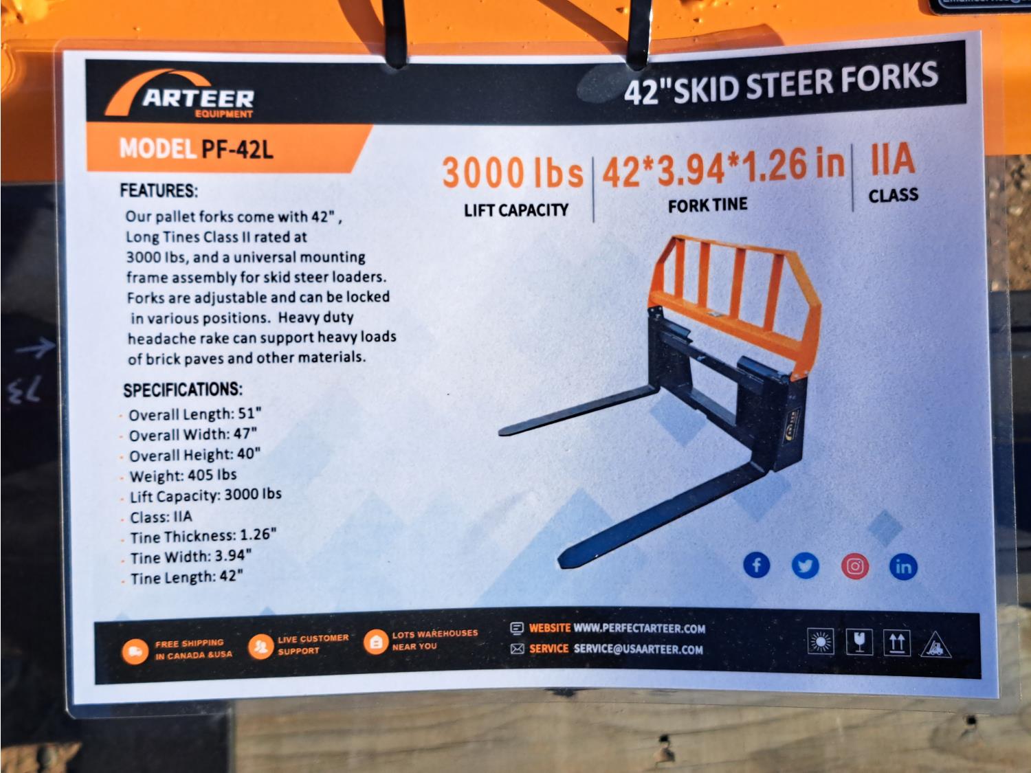 461 Arteer PF-42L Skid Steer Pallet Forks (Unused)