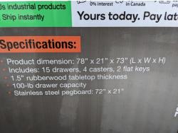 87 TMG Industrial WBC72S Stainless Steel 72 Inch Rolling Workbench Cabinet Combo (Unused)