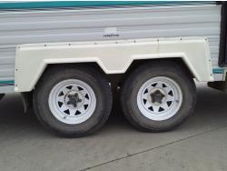 Sleeps 6, stove, fridge, microwave, master bedroom, manual awning, spring suspension, 225/75R15 tires