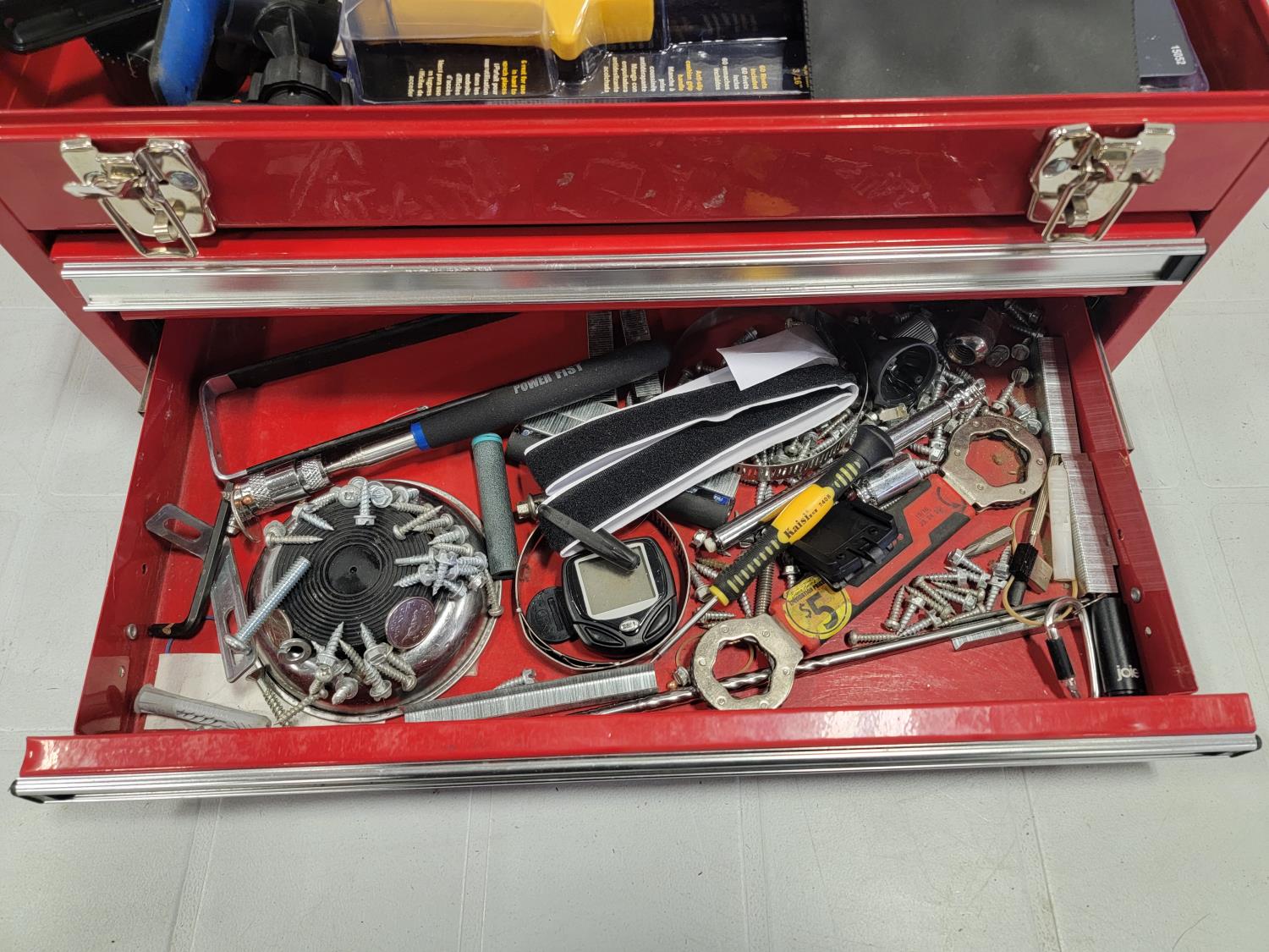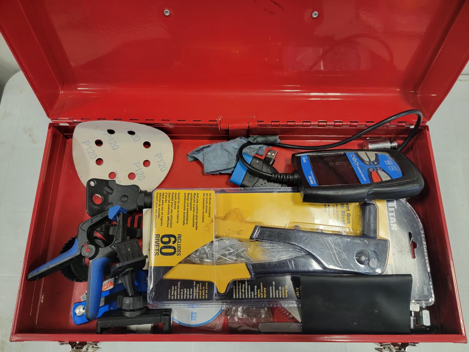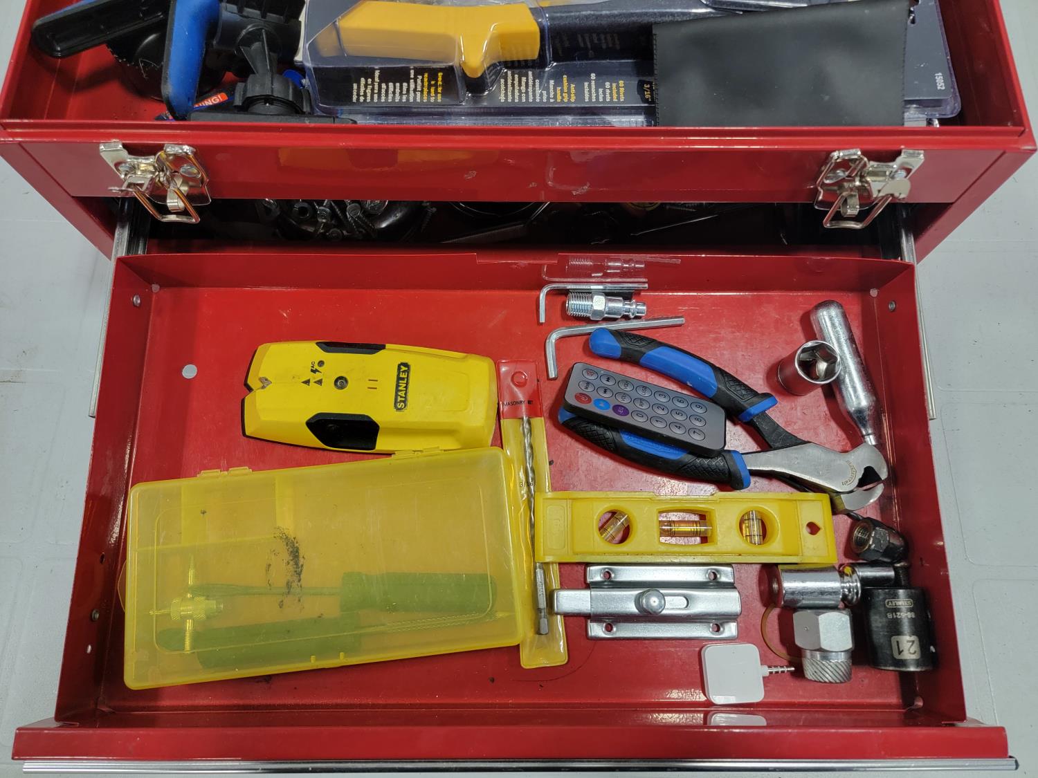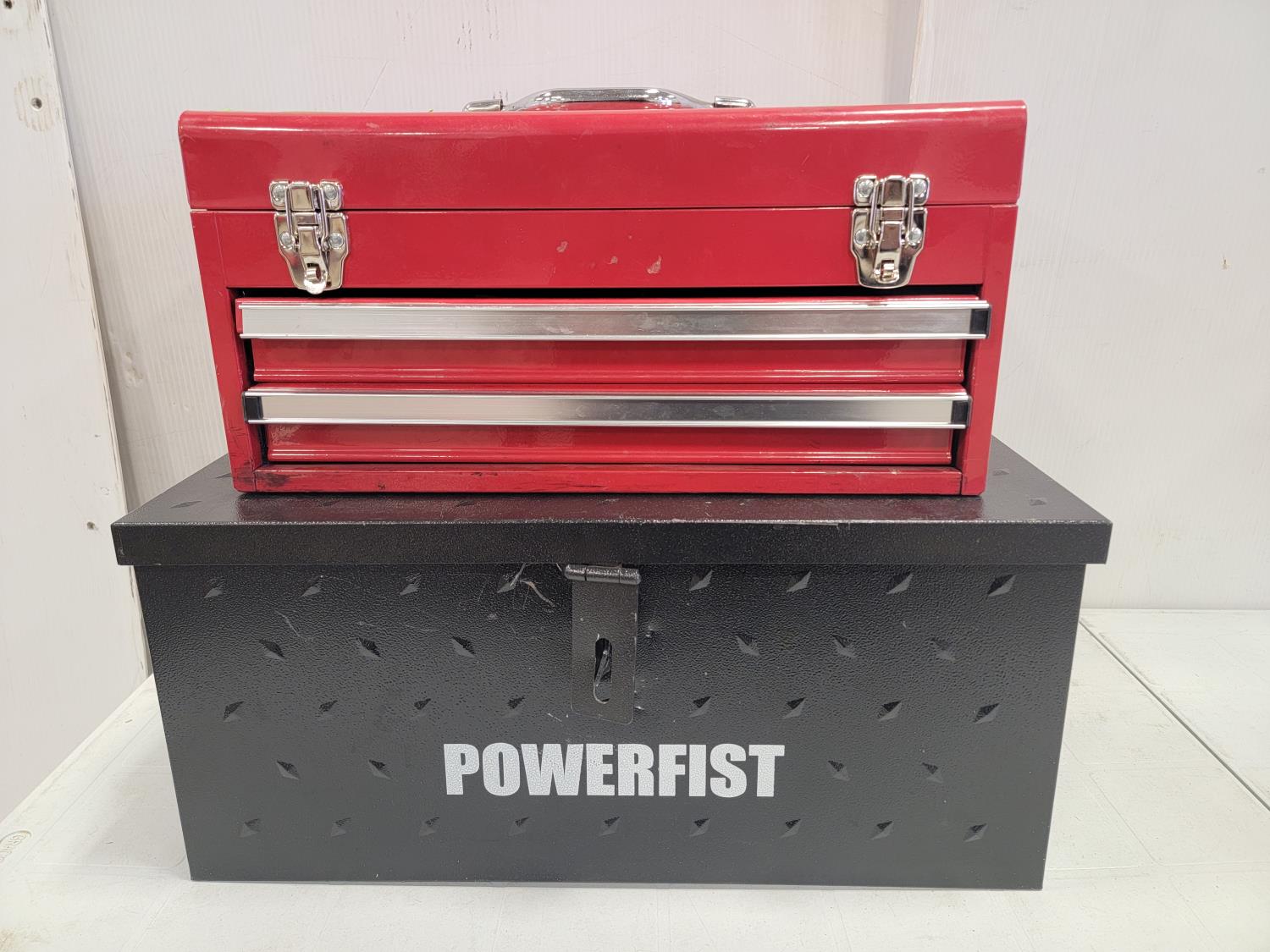 Power Fist tool box 22-14 inch x 11-5/8 inch x 10 inch, red tool box 18-1/8 inch x 9-1/2 inch x 9-7/8 inch