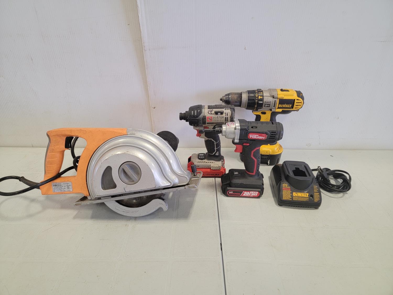 5336 Chicago 7-1/4 Inch Metal Cutting Saw and (3) Cordless Impact Drivers/Drill
