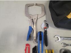 DeWalt tool bag, utility knives, combination wrenches, adjustable wrenches