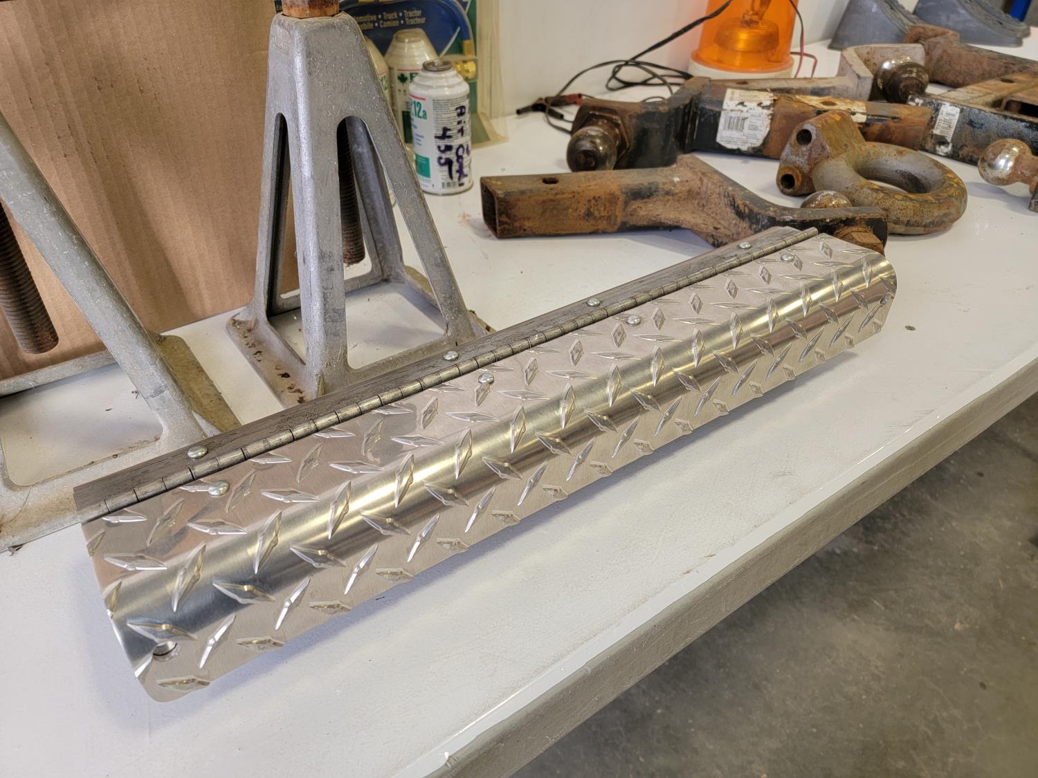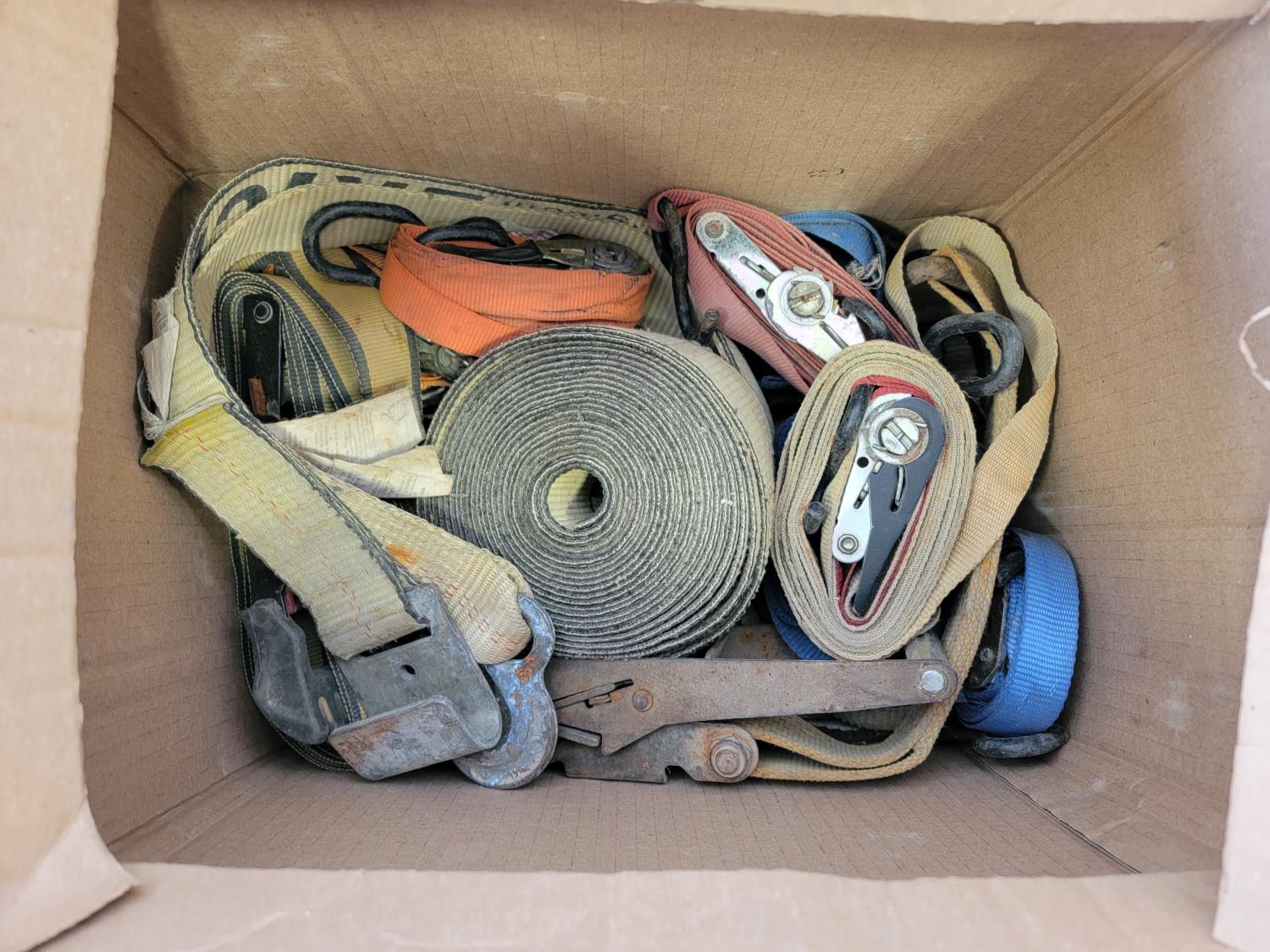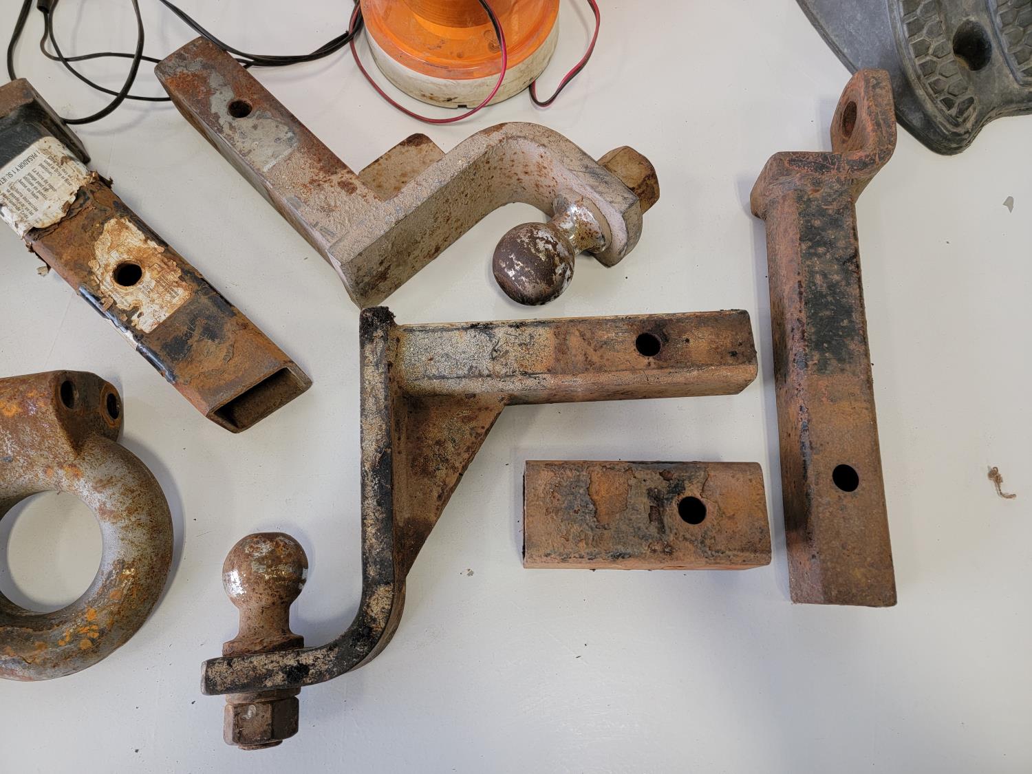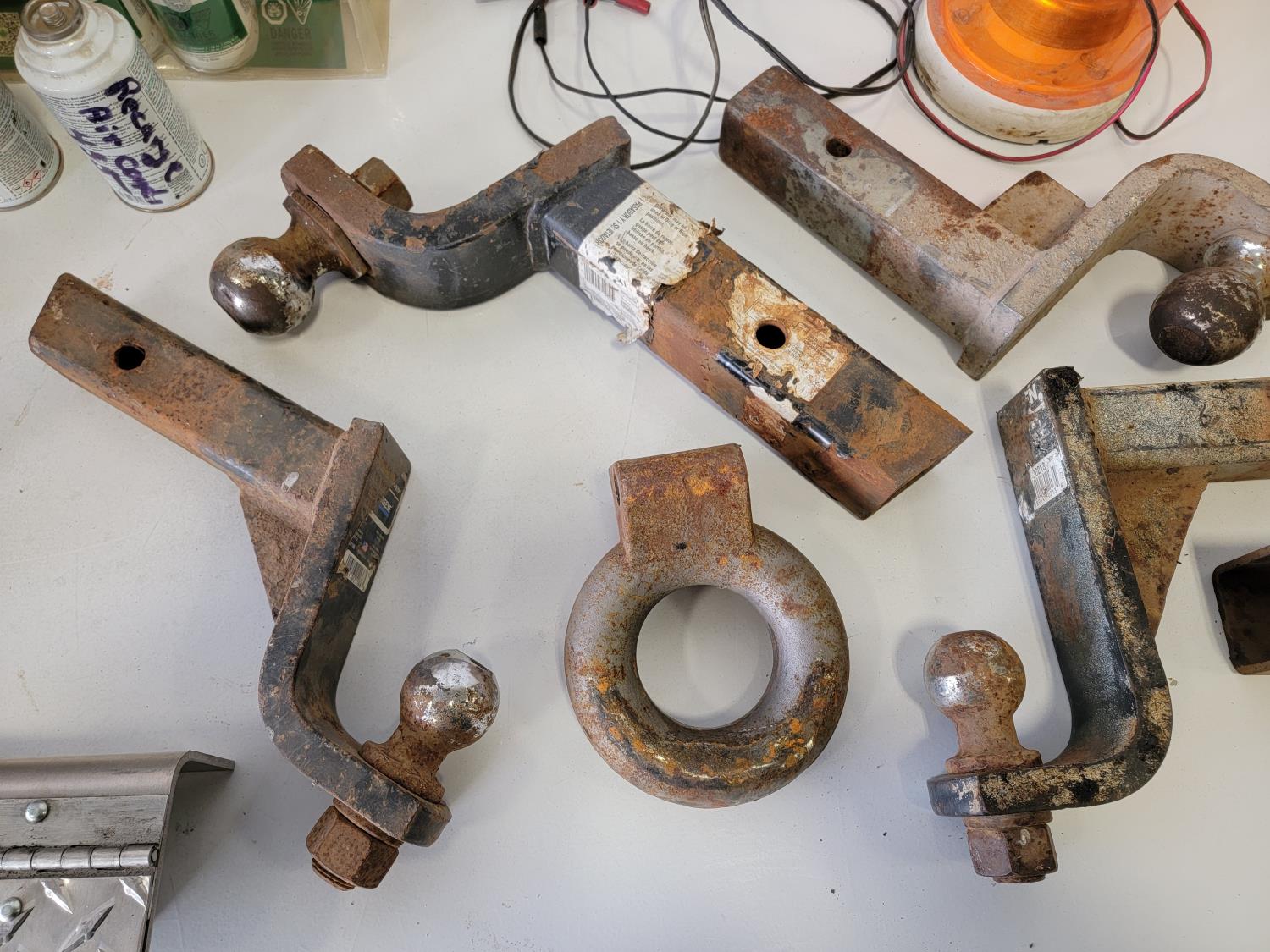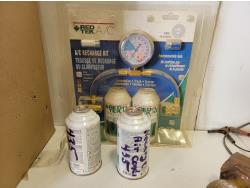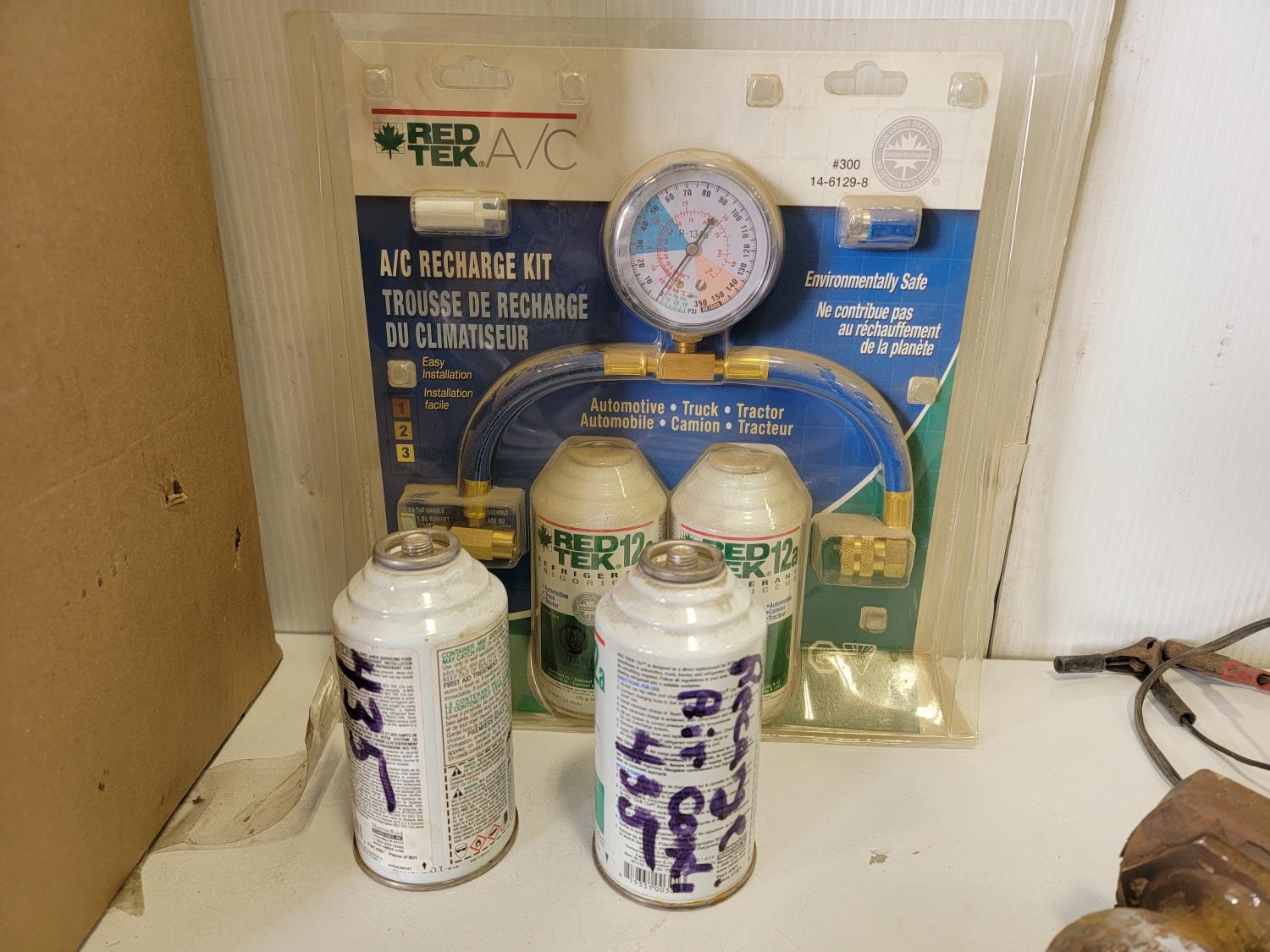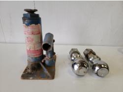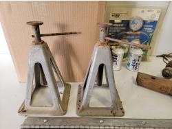 (2) jack stands, hitches, A/C recharge kit, chock blocks, beacon light, ratchet straps, bottle jack