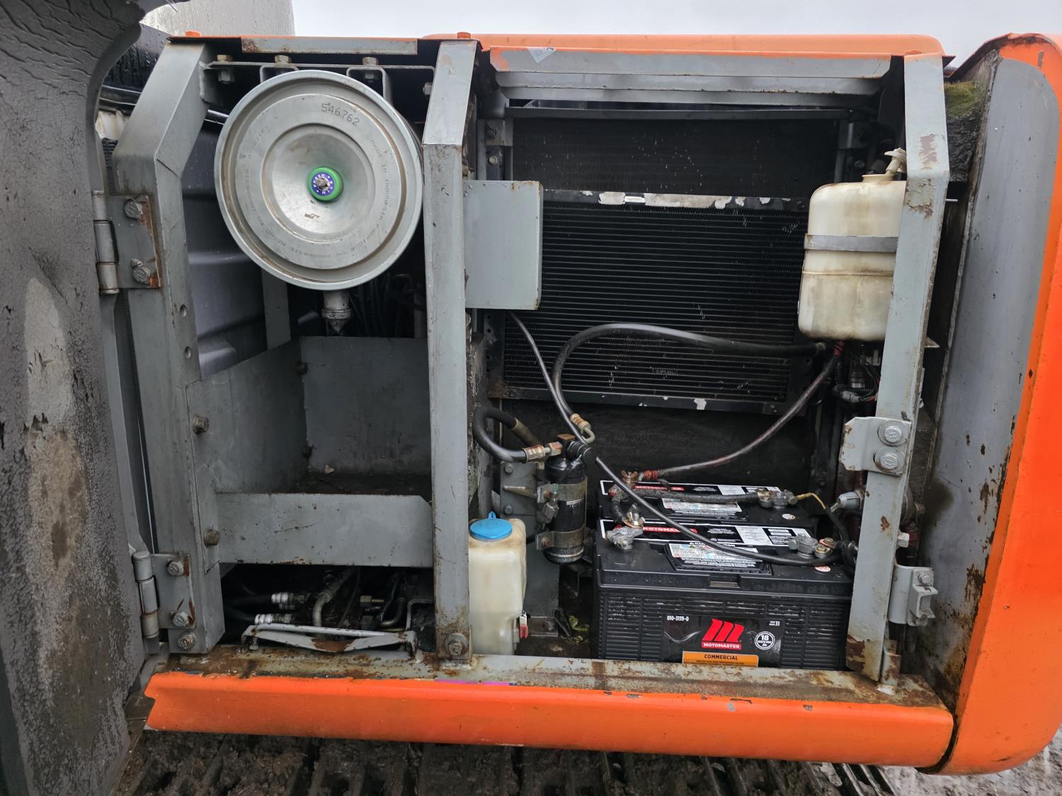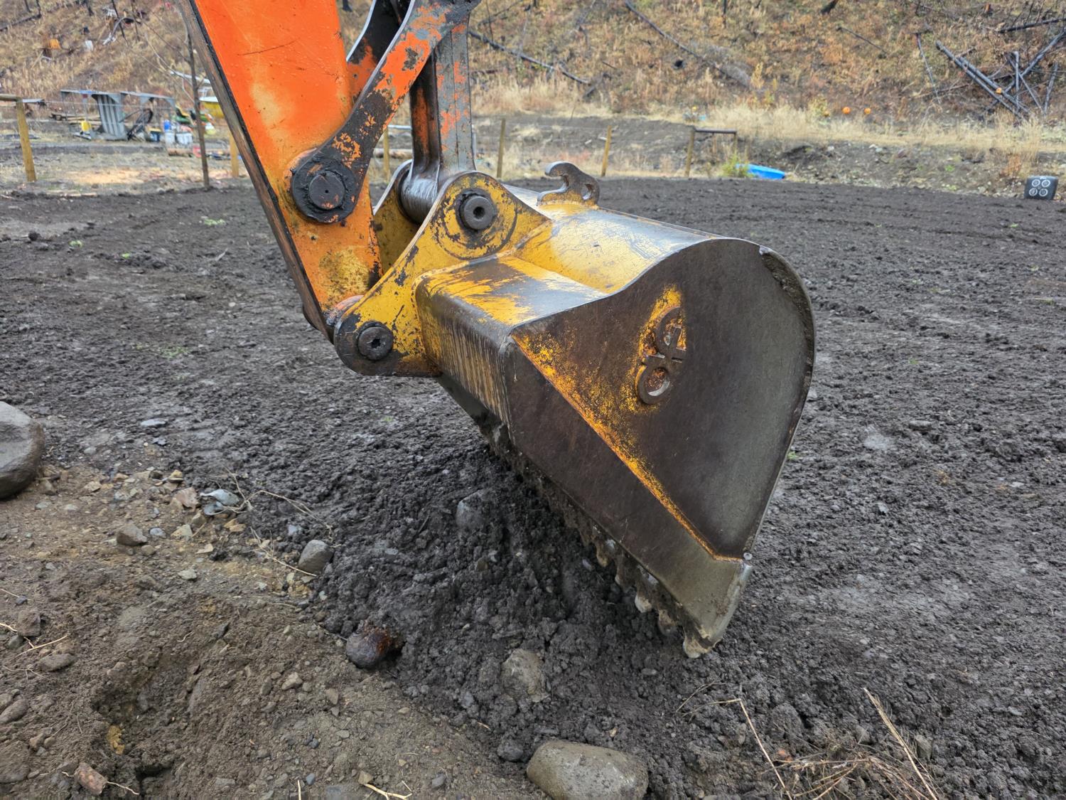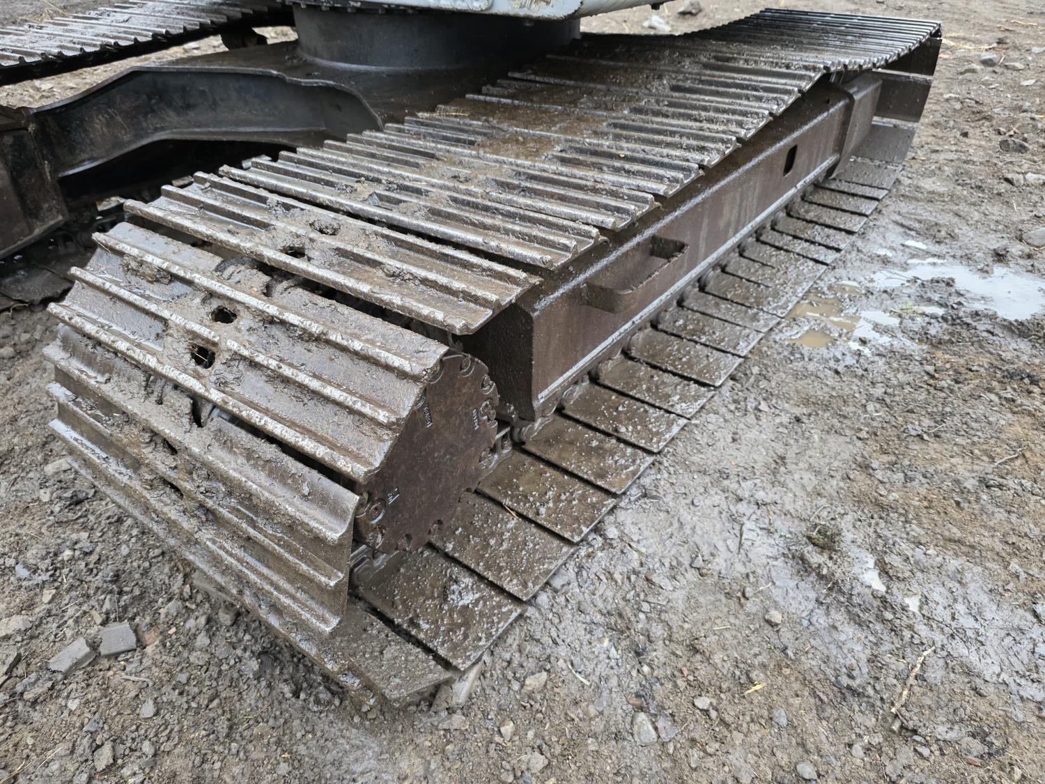 Enclosed cab, A/C, pilot controls, Isuzu 4BD1T Turbo Diesel Engine, 80HP, 52 inch cleanup bucket, 27.5 inch track pads, triple grousers
