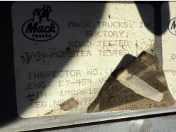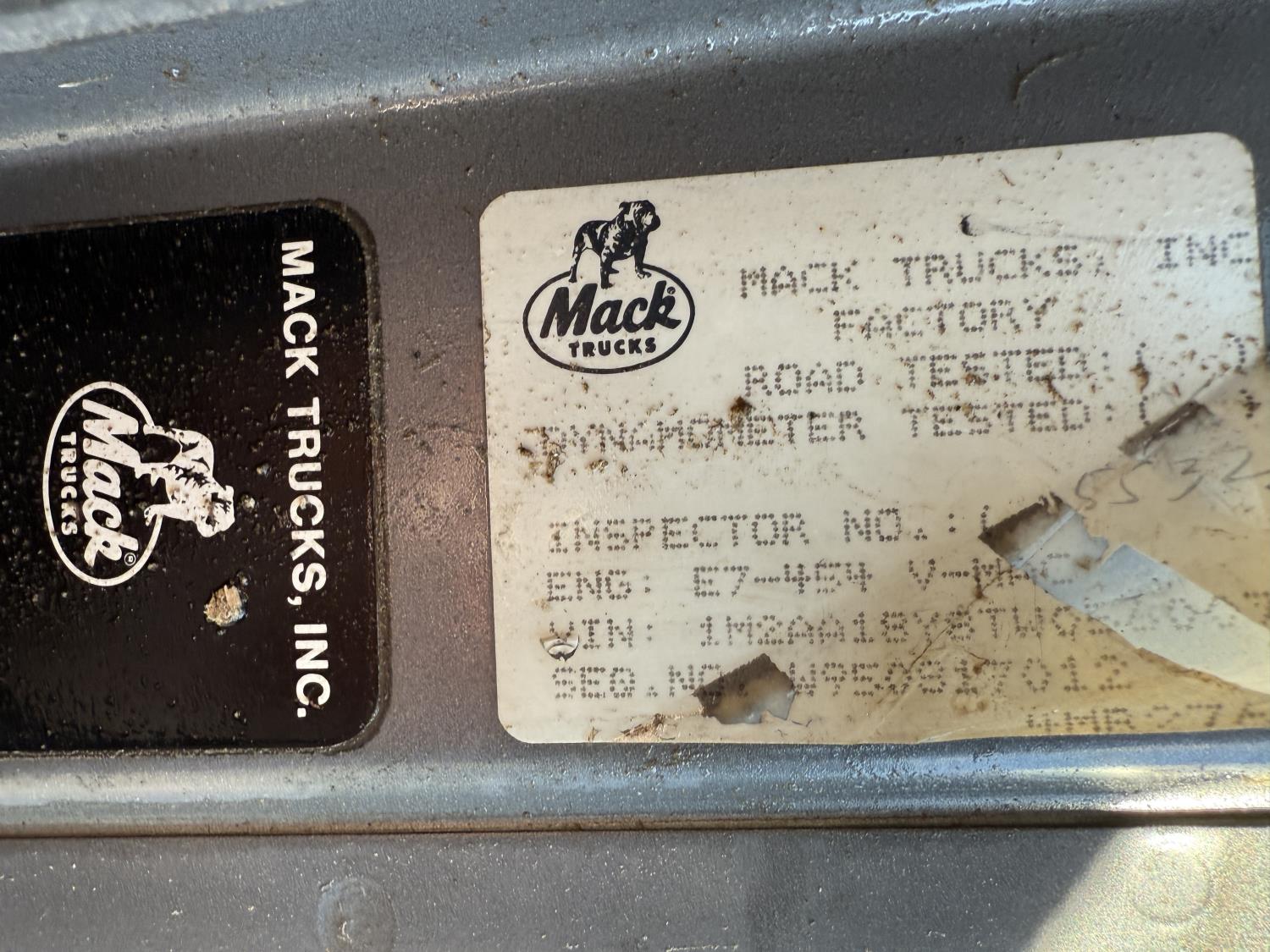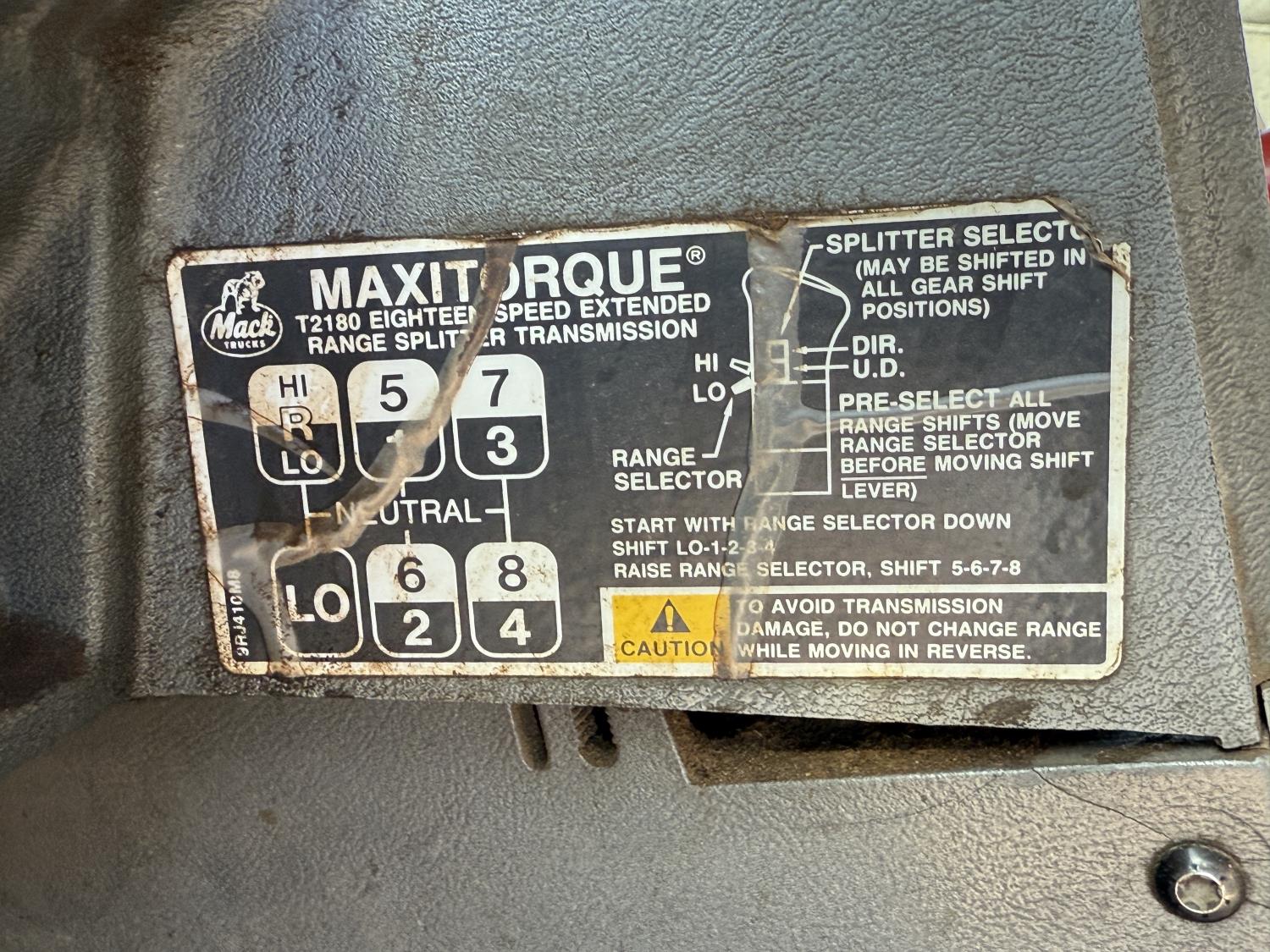 Mack E7-454 6 cylinder diesel engine, Mack 18 speed transmission, flat top 40 inch sleeper, air ride driver seat, hydraulic wet kit, air ride suspension, all aluminum wheels, 11R-24.5 tires