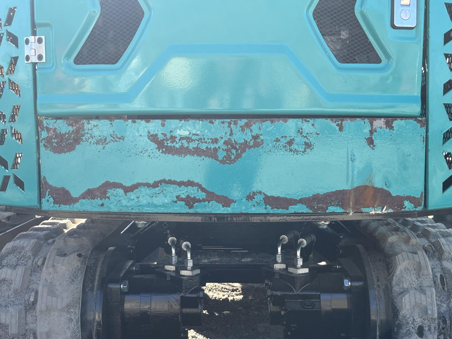Open station, 13.5 gas engine, 15 inch dig bucket, manual thumb, 1 auxiliary hydraulics, 2 Ft 8 inch stick, backfill blade, 7 inch rubber tracks