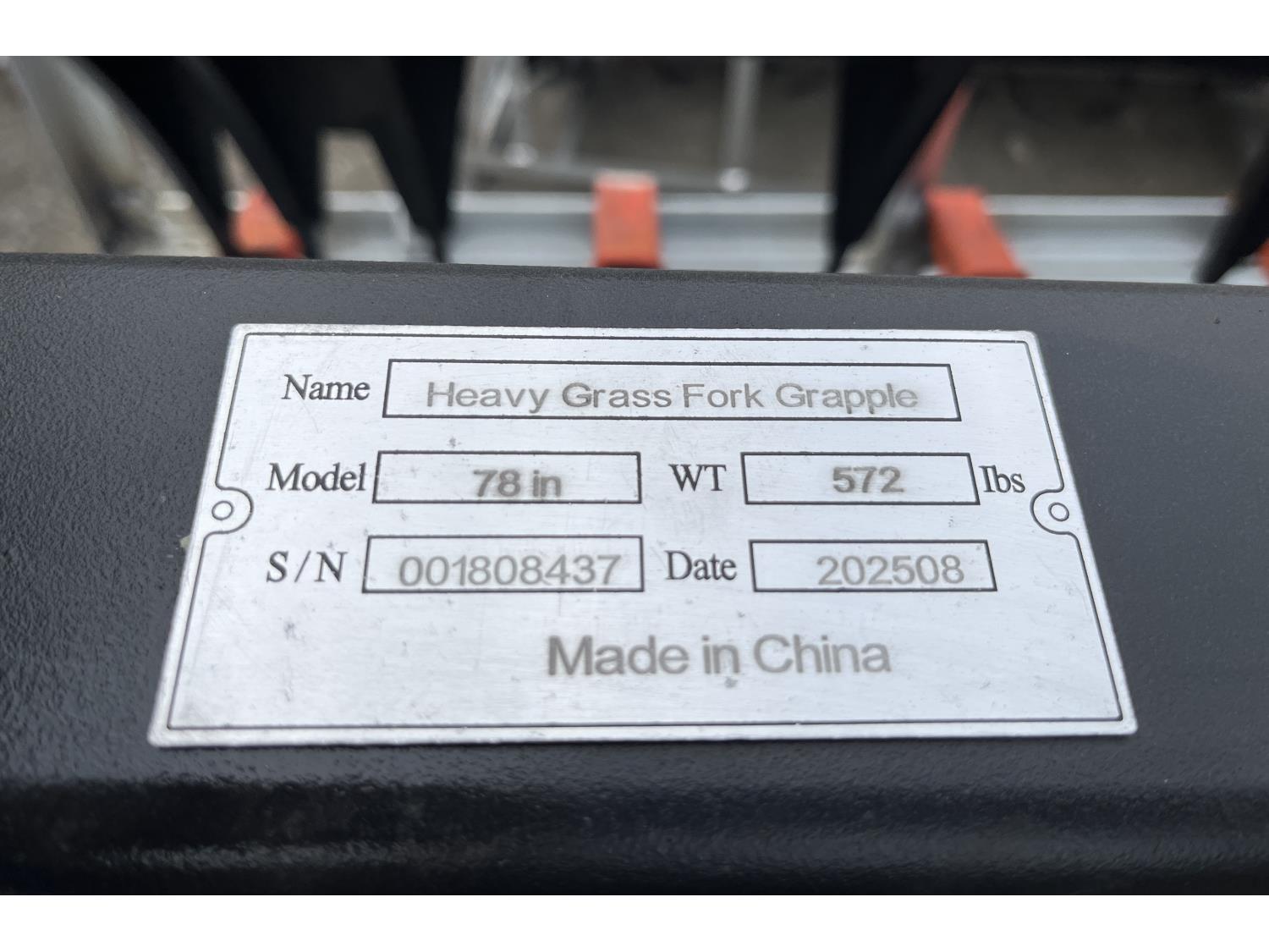 433 2025 Greatbear 78 Inch Heavy Grass Fork Grapple - Skid Steer Attachment (Unused)