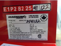 3.5 GPM at 4000 PSI, 15 HP, gasoline engine, electric start, 12 volt burner, oil/diesel fired burned/thermostat, schedule 80 coil with stainless steel housing, fully welded, powder coated frame, 10 gallon poly fuel tank, 30' hose and wand