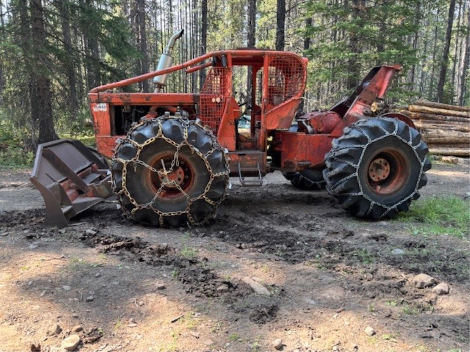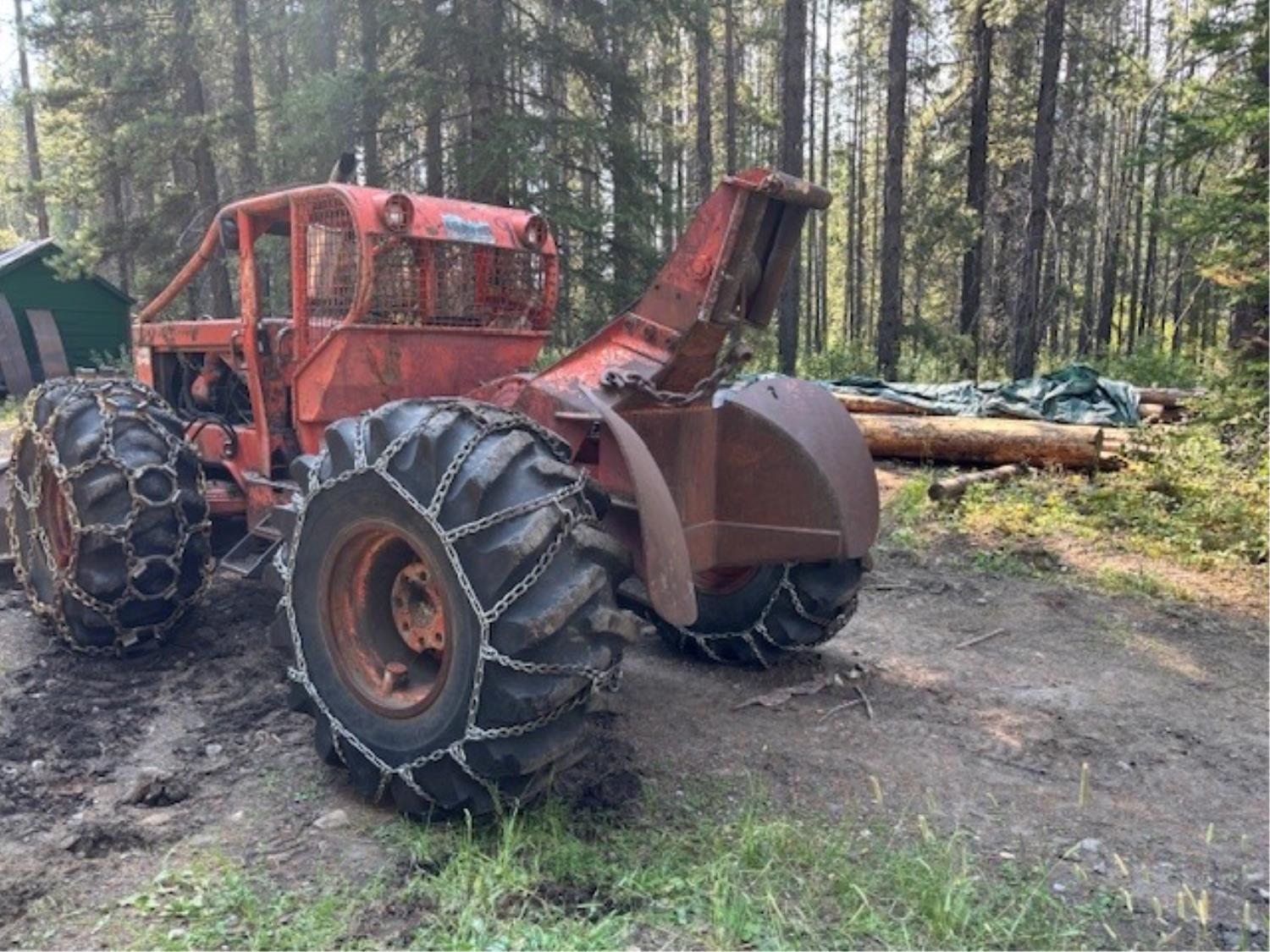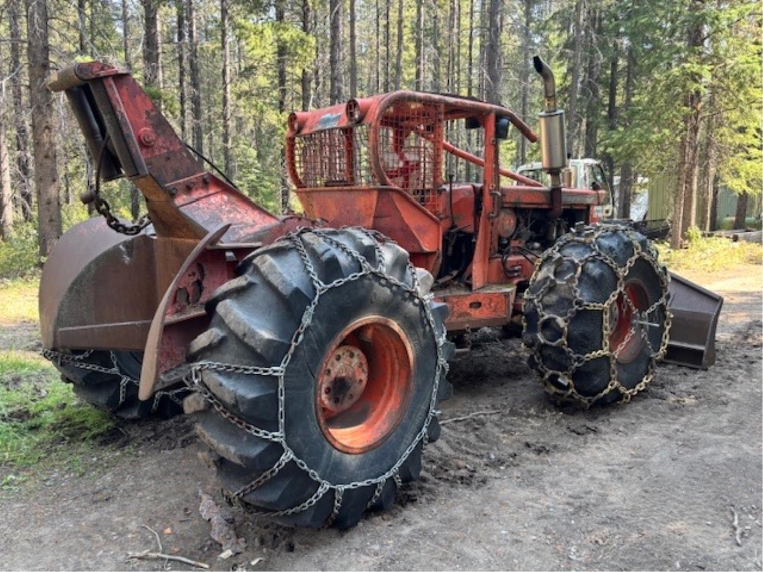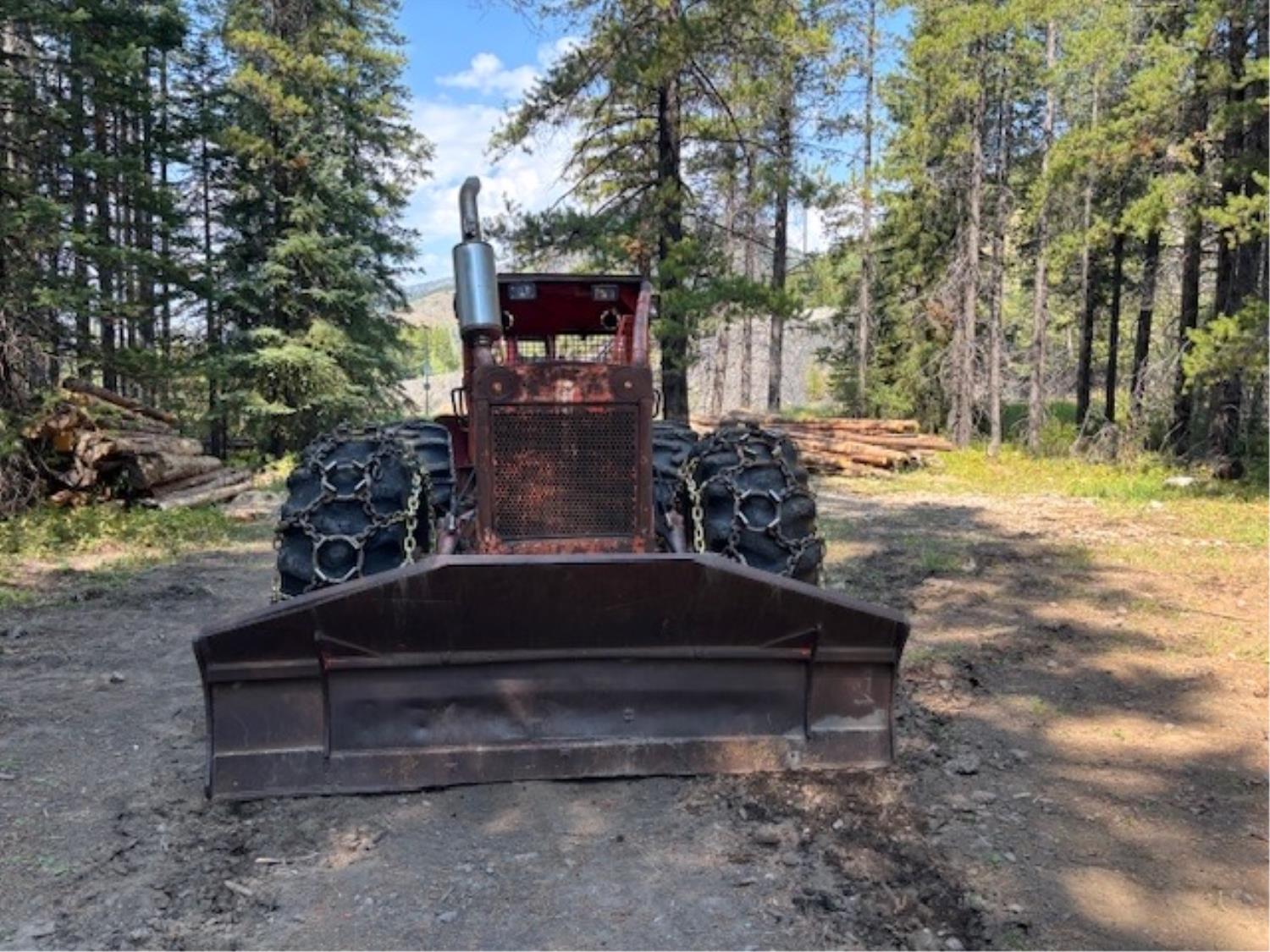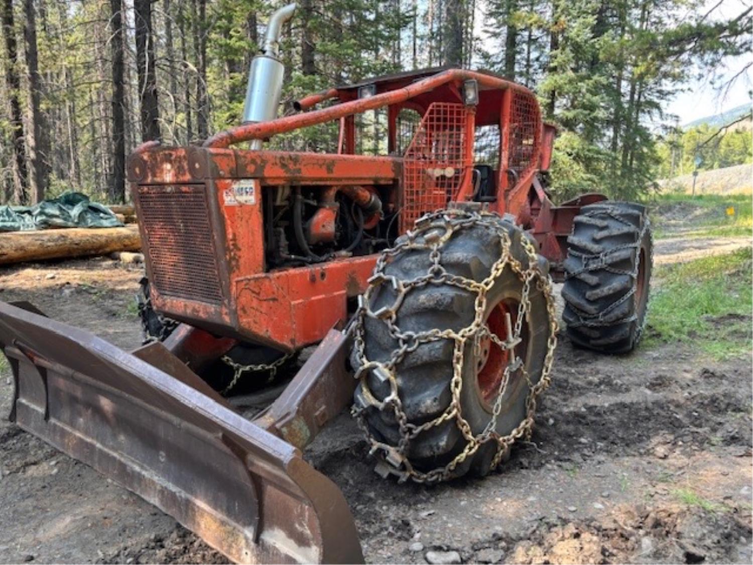 Detroit 453 diesel engine, 2 speed Alison transmission, Gearmatic winch, front blade, 2 sets tire chains, 23.1-26 tires