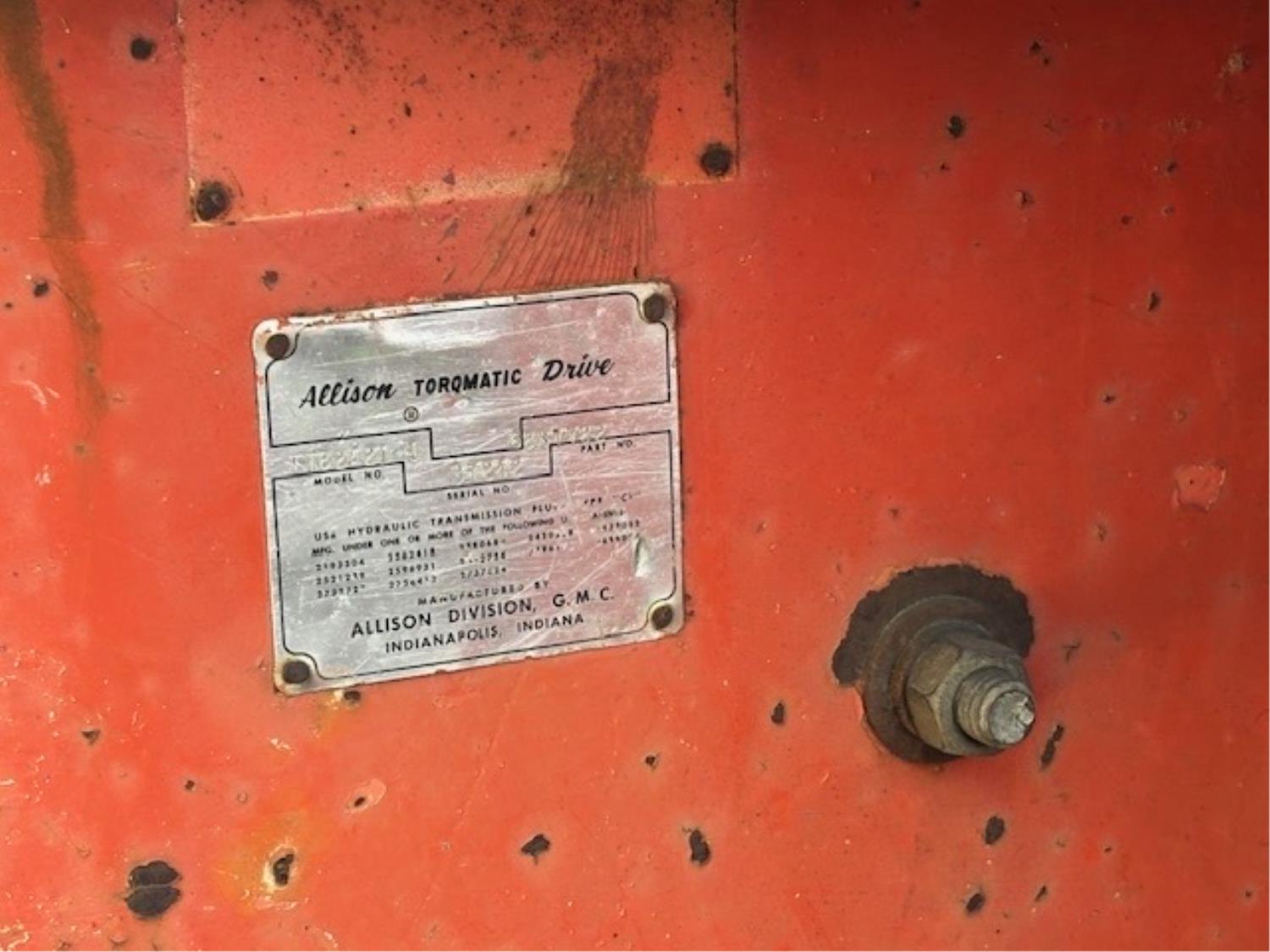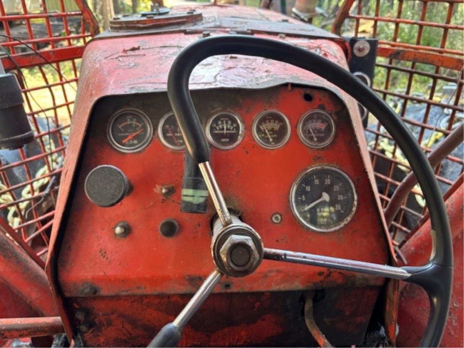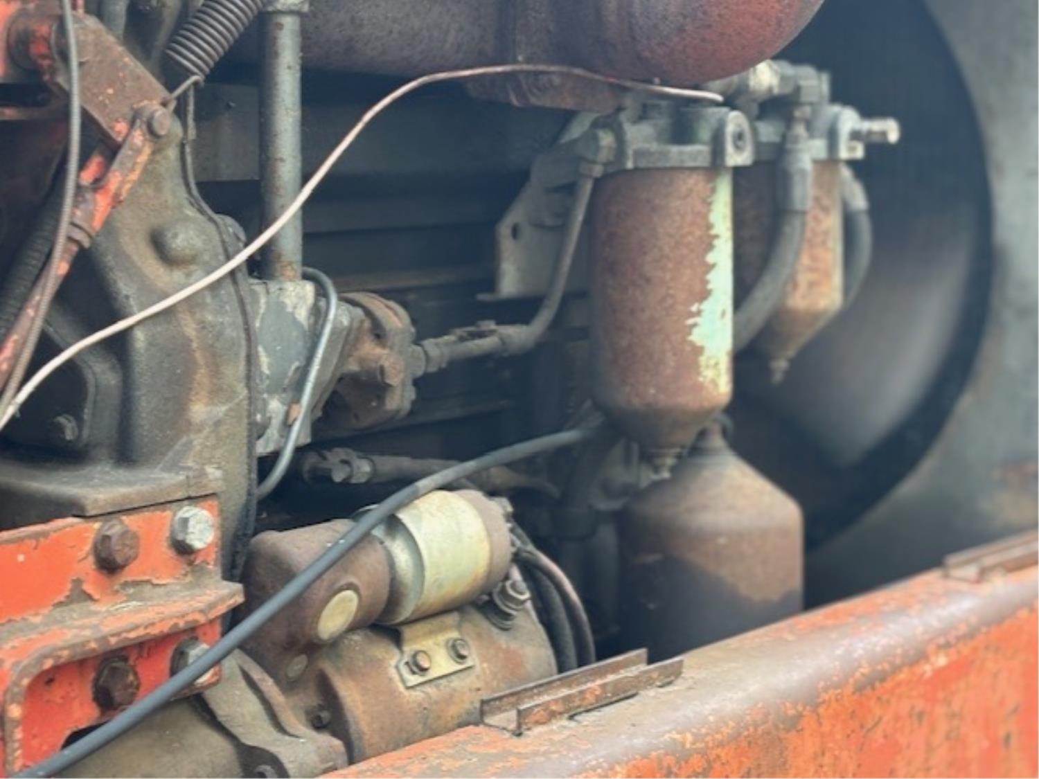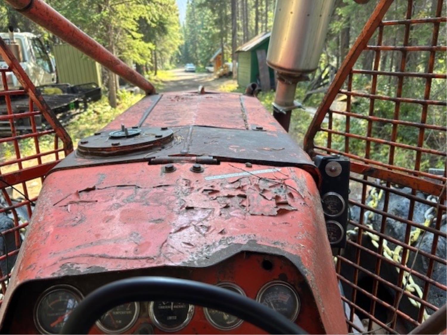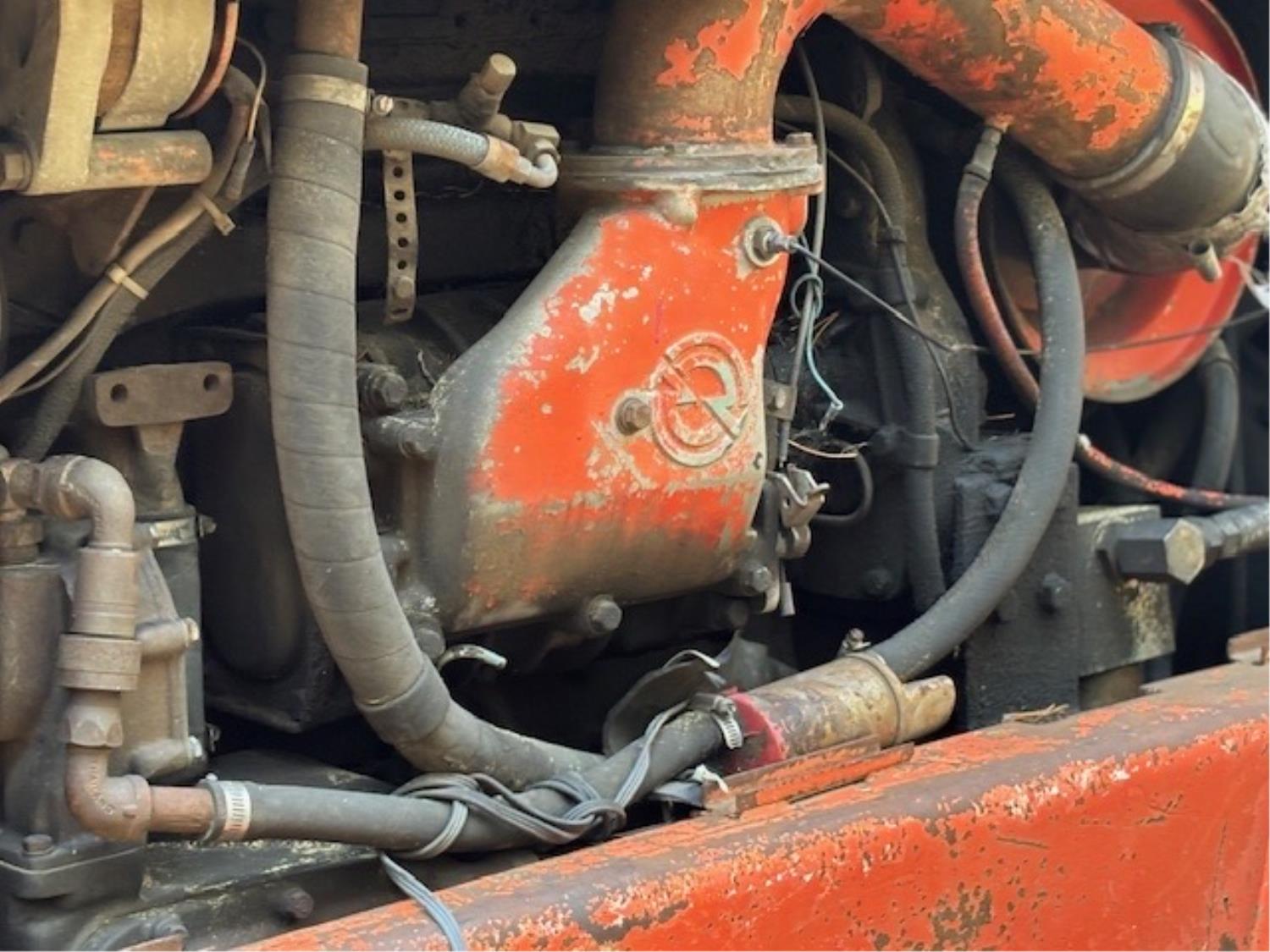 Detroit 453 diesel engine, 2 speed Alison transmission, Gearmatic winch, front blade, 2 sets tire chains, 23.1-26 tires