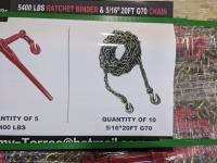 88 Greatbear (5) 5400 lb Ratchet Binders and (10) 5/16 Inch X 20 Ft G70 Chains (Unused)