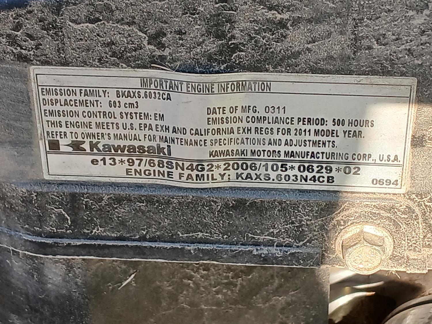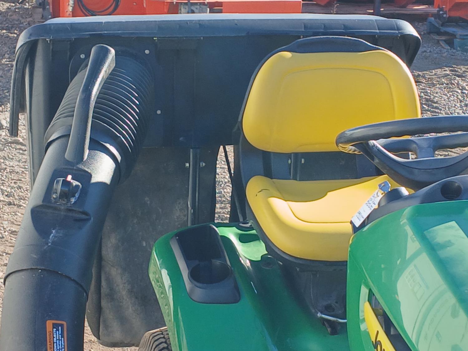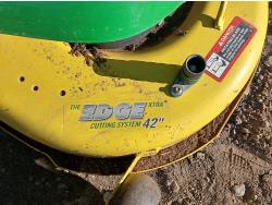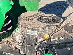42 inch cutting deck, dual rear catch bags, (1) extra blower attachment, Kawasaki motor.