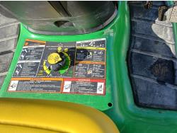 42 inch cutting deck, dual rear catch bags, (1) extra blower attachment, Kawasaki motor.