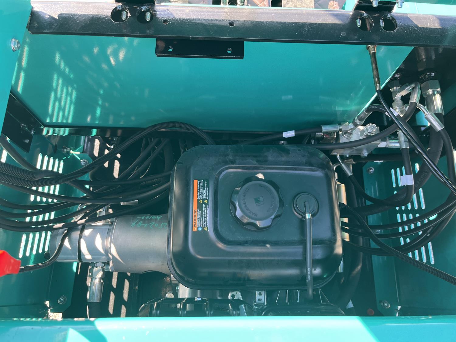 pilot controls, Zonsen 17Hp gas engine, 16 inch dig bucket, manual thumb, 1 auxiliary hydraulics, backfill blade, rubber tracks