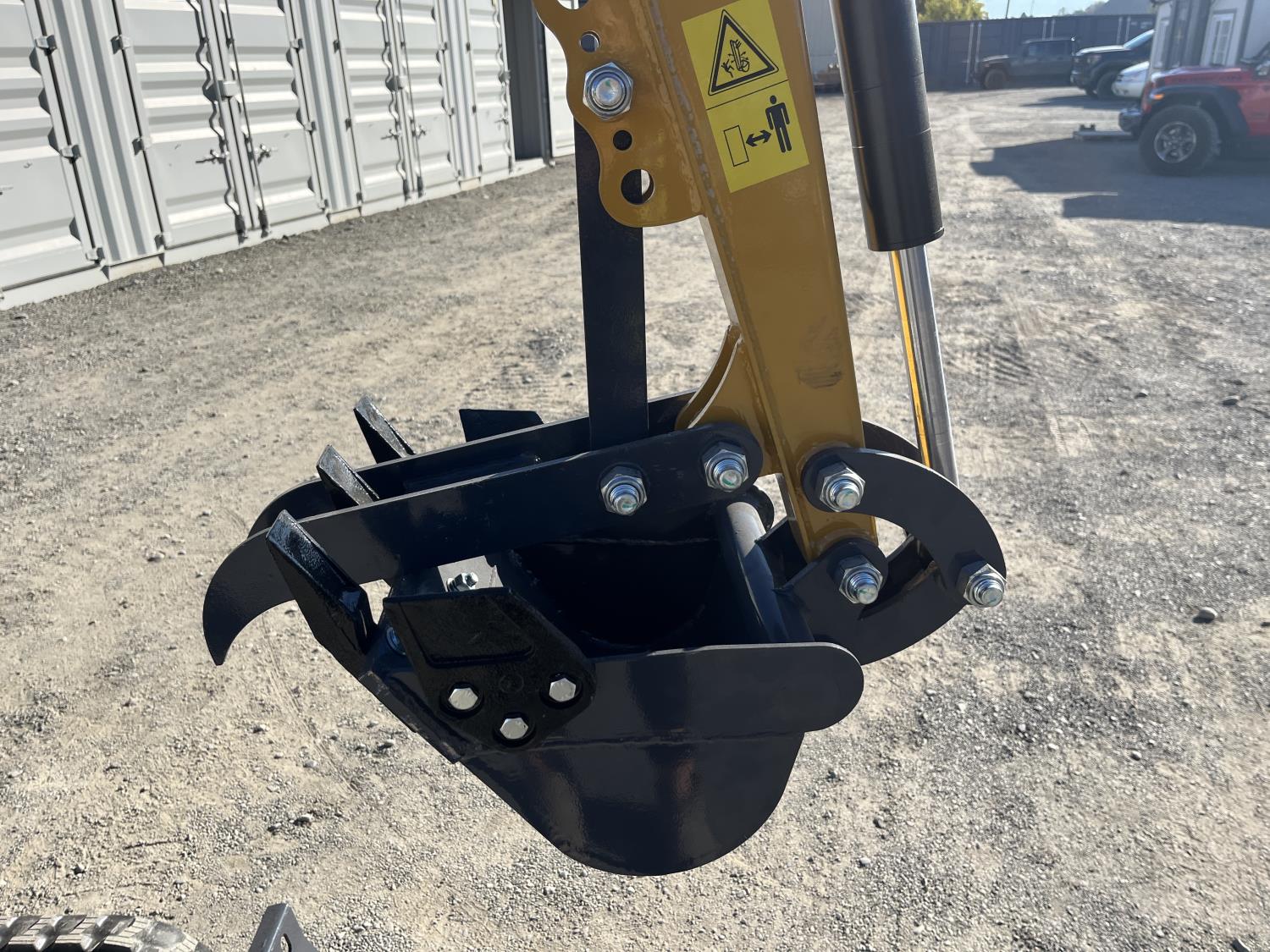 Open station, gas engine, 15 inch dig bucket, manual thumb, 2 Ft 8 inch stick, backfill blade, 7 inch rubber tracks