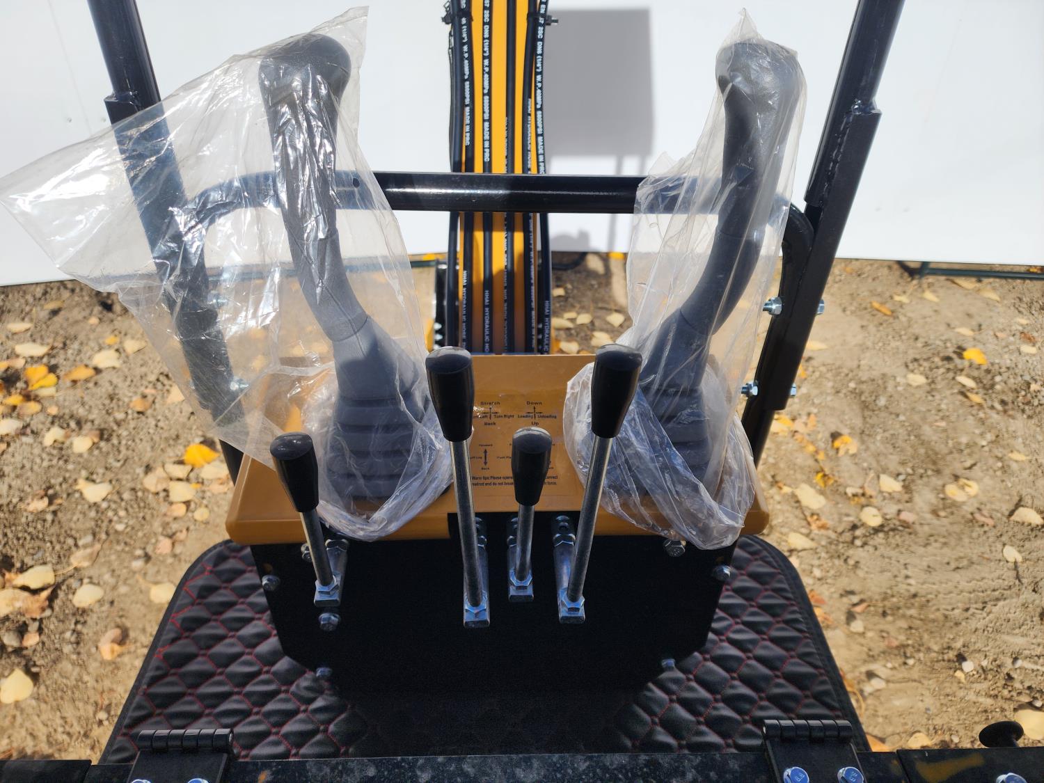 Open station, gas engine, canopy, 16 inch dig bucket, manual thumb, 1 auxiliary hydraulics, 2 Ft 8 inch stick, backfill blade, 7 inch rubber tracks