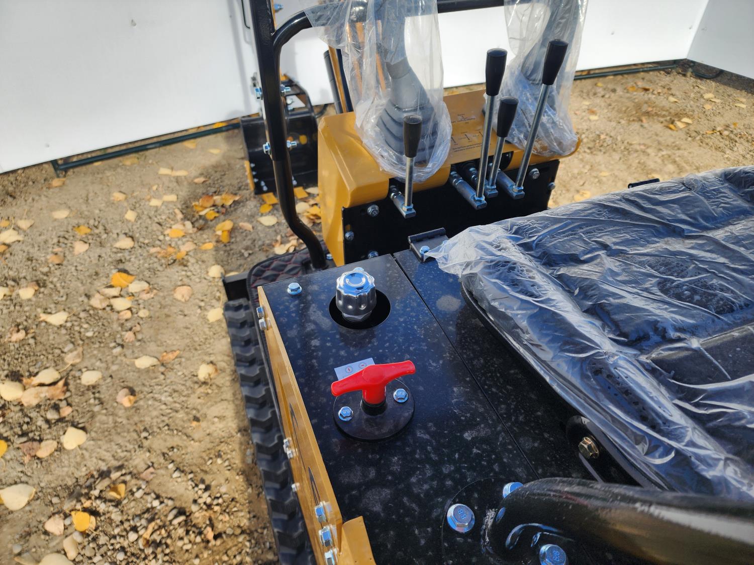 Open station, gas engine, canopy, 16 inch dig bucket, manual thumb, 1 auxiliary hydraulics, 2 Ft 8 inch stick, backfill blade, 7 inch rubber tracks