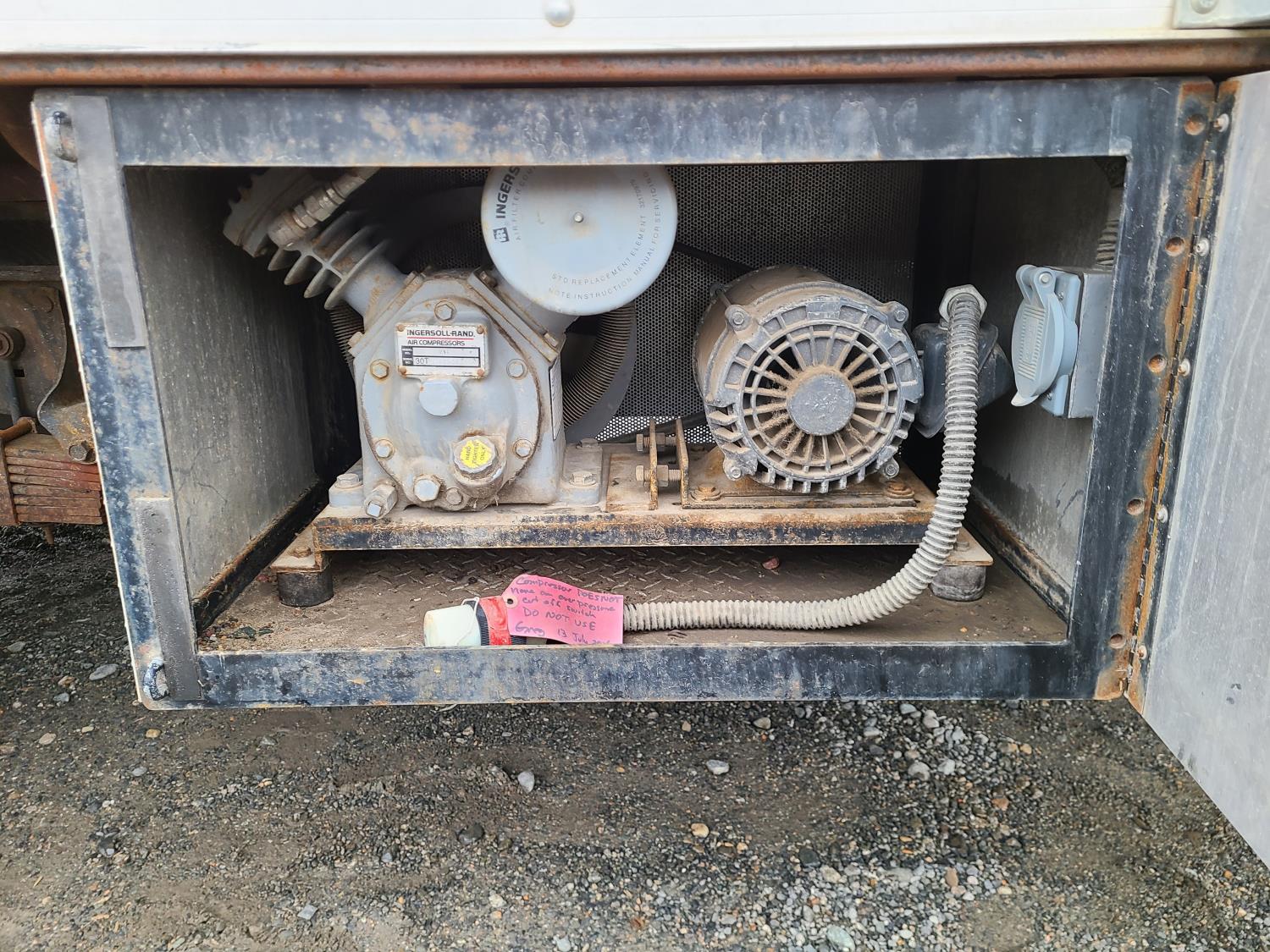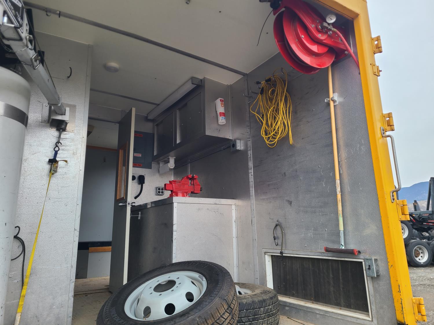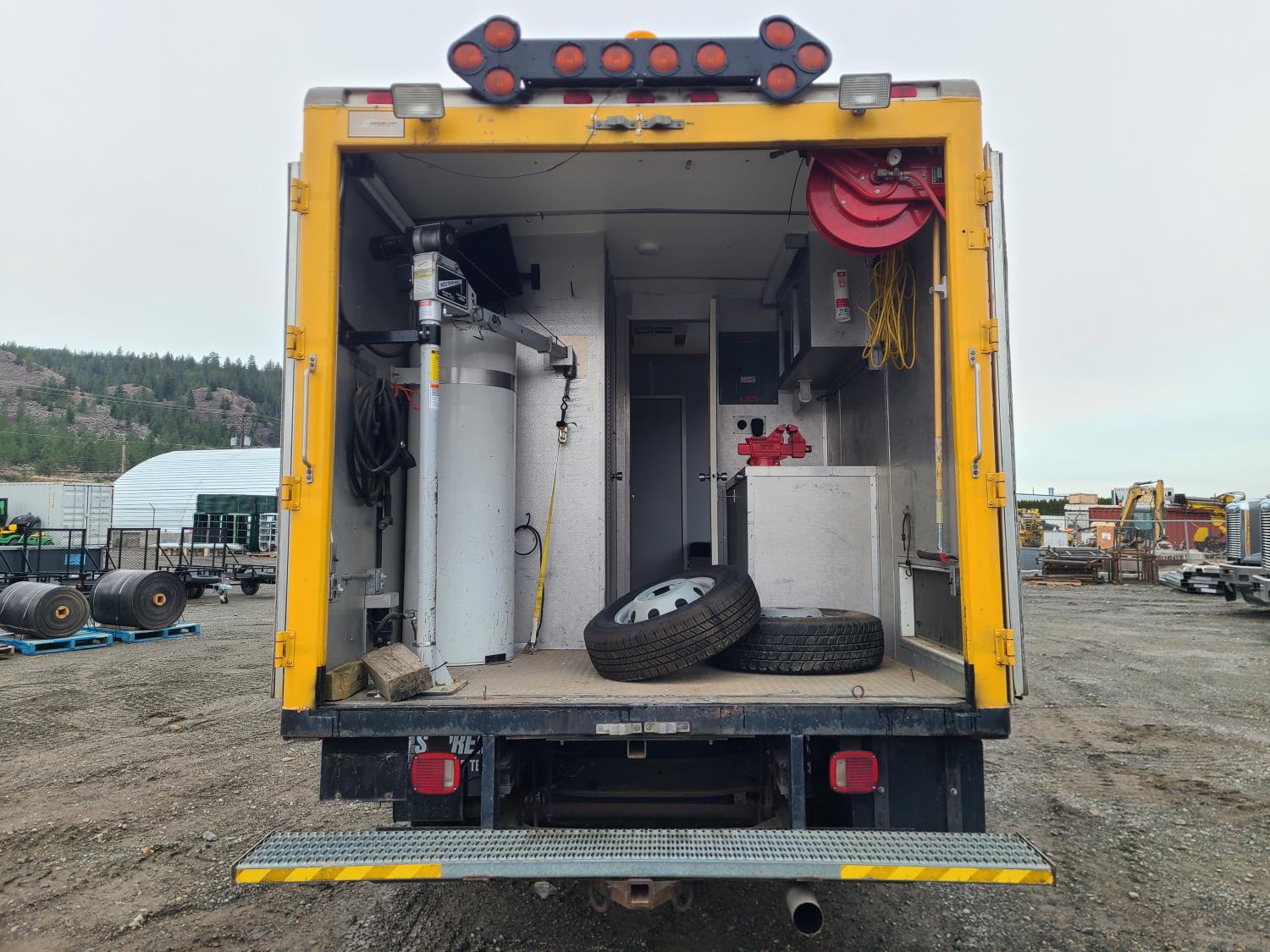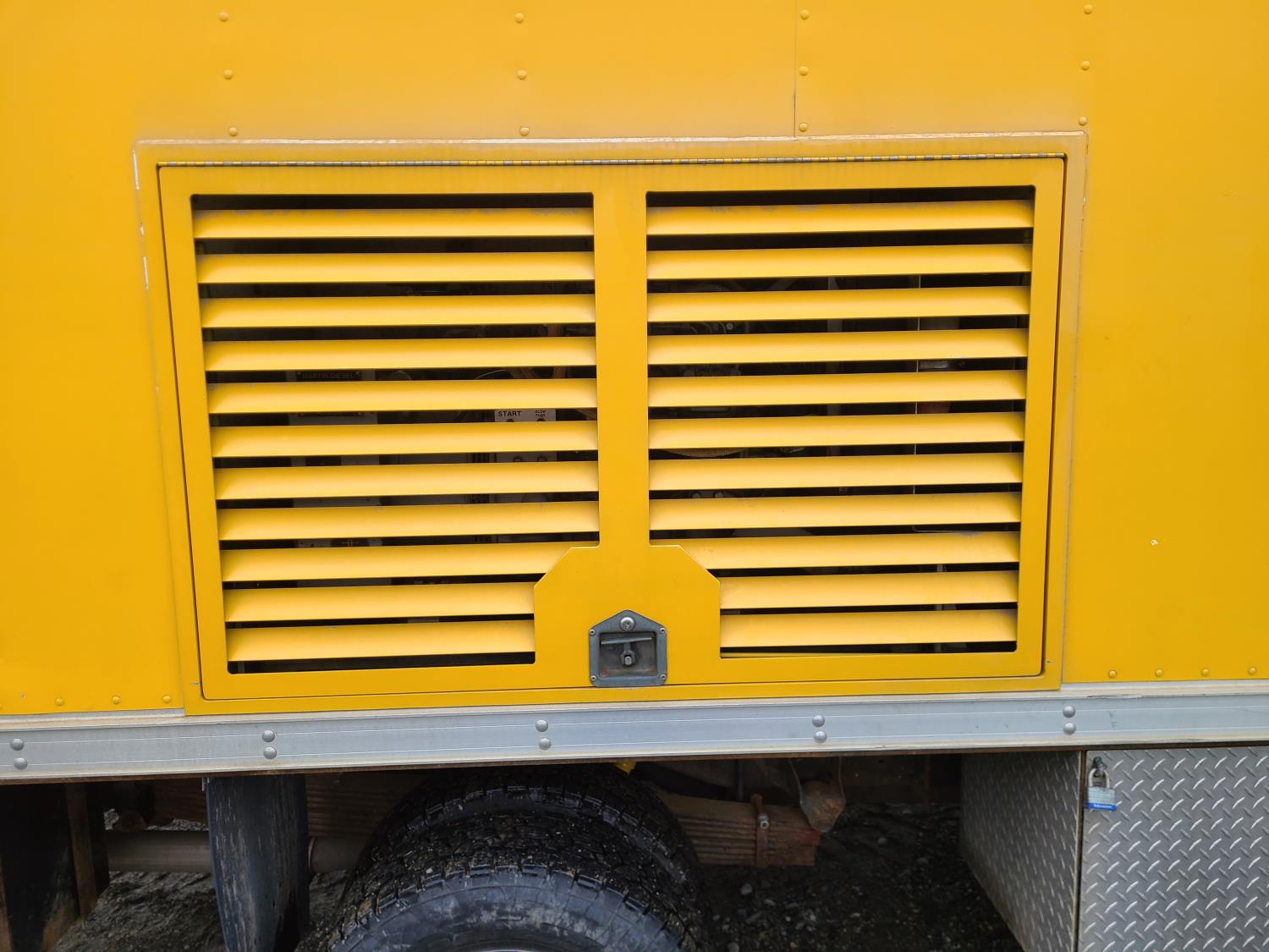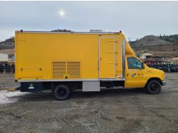 Ford 7.3 L diesel engine, automatic transmission, tow/ haul mode, A/C, 18 ft service box, safety lighting, 225/75/ R16 tires; 3- CCTV built in DVR cameras. Office area equipped with: RV-style A/C and heating, (3) computer monitors, refrigerator, microwave, onboard air compressor plumbed to hose reel, 1,500 lb Davit crane, 30-gallon water tank with pump and spray hose. Power System: Yanmar 125-DS 3 cylinder 12.5 kW diesel generator with single or three phase power. Generator is wired to truck electrical system and fuel direct from truck tank. (Documentation and operating procedures available for review)