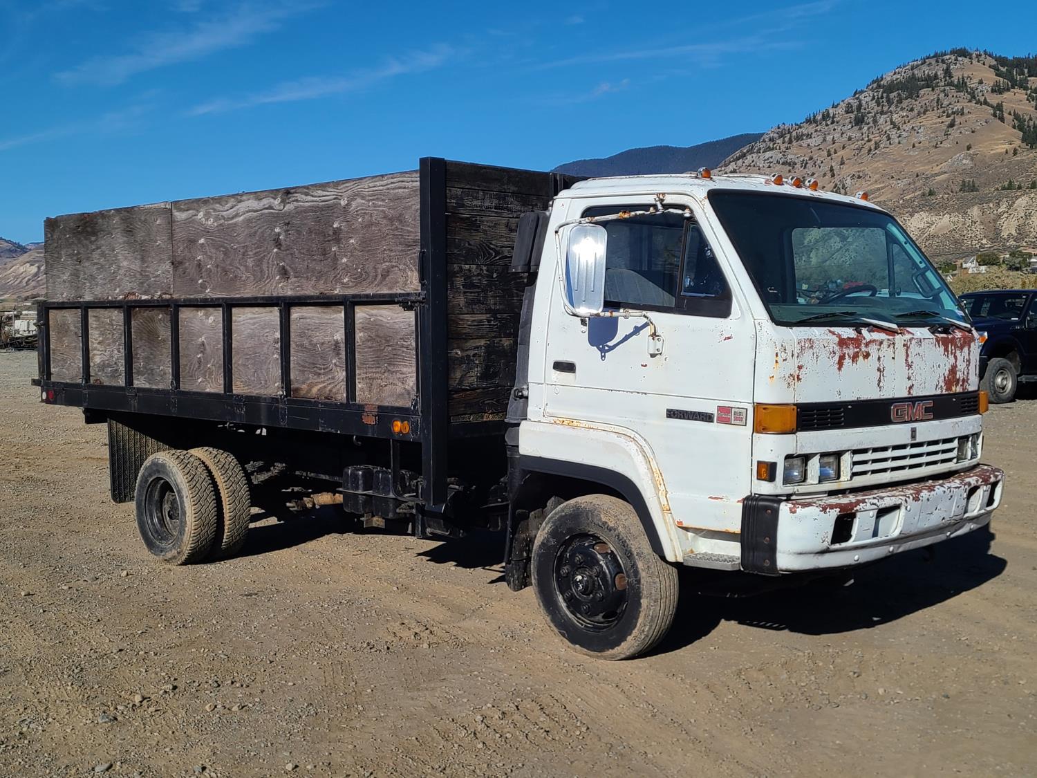 284 1991 GMC W5R042 S/A Day Cab Flat Deck W/Dump (Inoperable)