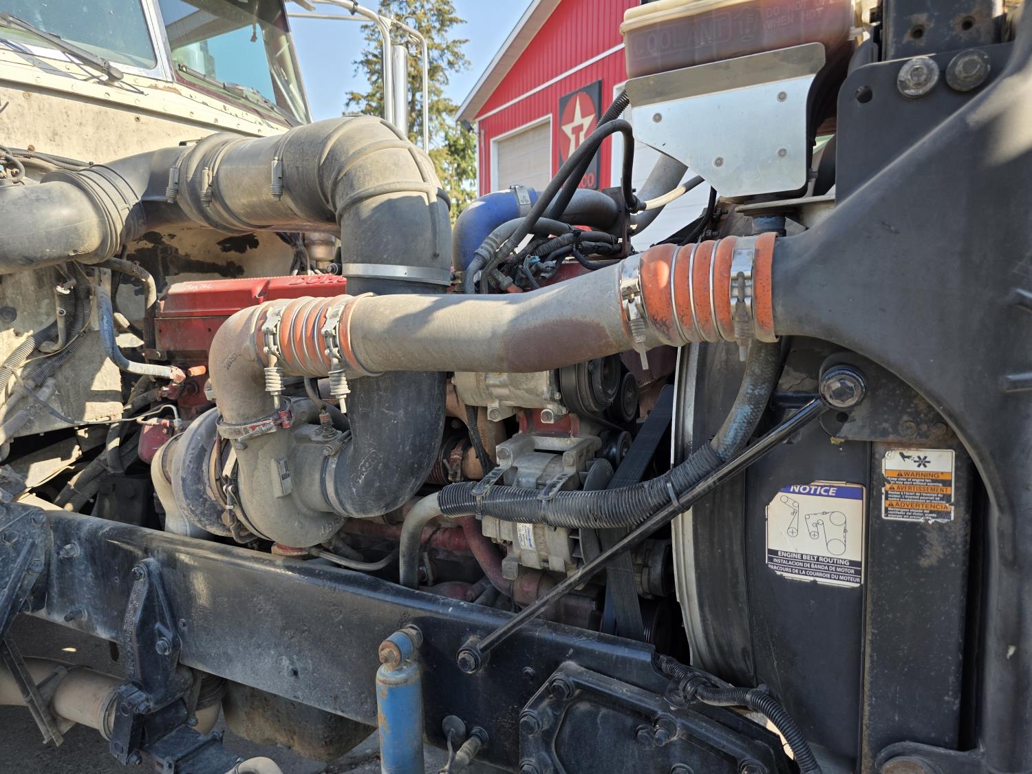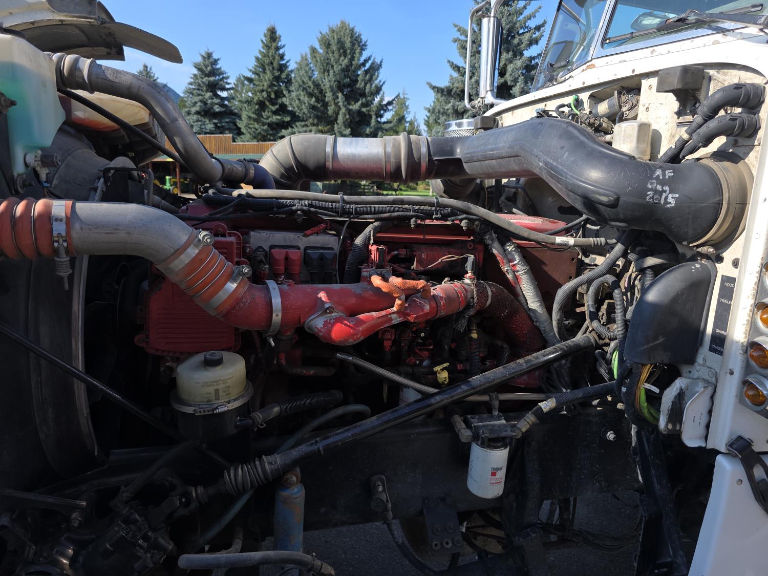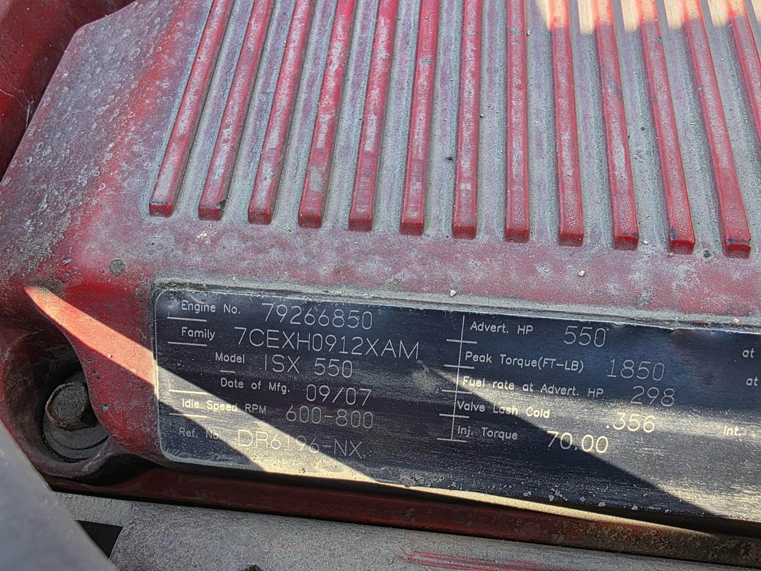 Cummins ISX 15 L 550 HP diesel engine, engine brake, Eaton Fuller 18 speed manual transmission, mid rise 72 inch sleeper, fridge, A/C, air ride driver seat, radio, 46,000 lb rear axles, full lockers, Regularly maintained with many repairs - documents available. Most recent major work is an Engine overhaul done in October 2024 including replace main bearing, removed head, clean cylinder head, changed #1 and #2 injectors, inspect camshafts and rockers (all looked good) overhaul kit with 152mm liners. Documents provided. , 11R-22.5 tires