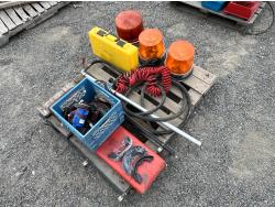 Mechanic's creeper, (4) brake pads, (3) firetruck lights, cb radios, chainsaw sharpener