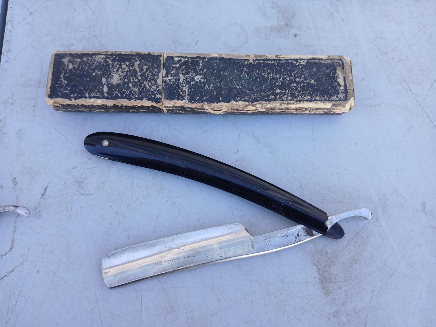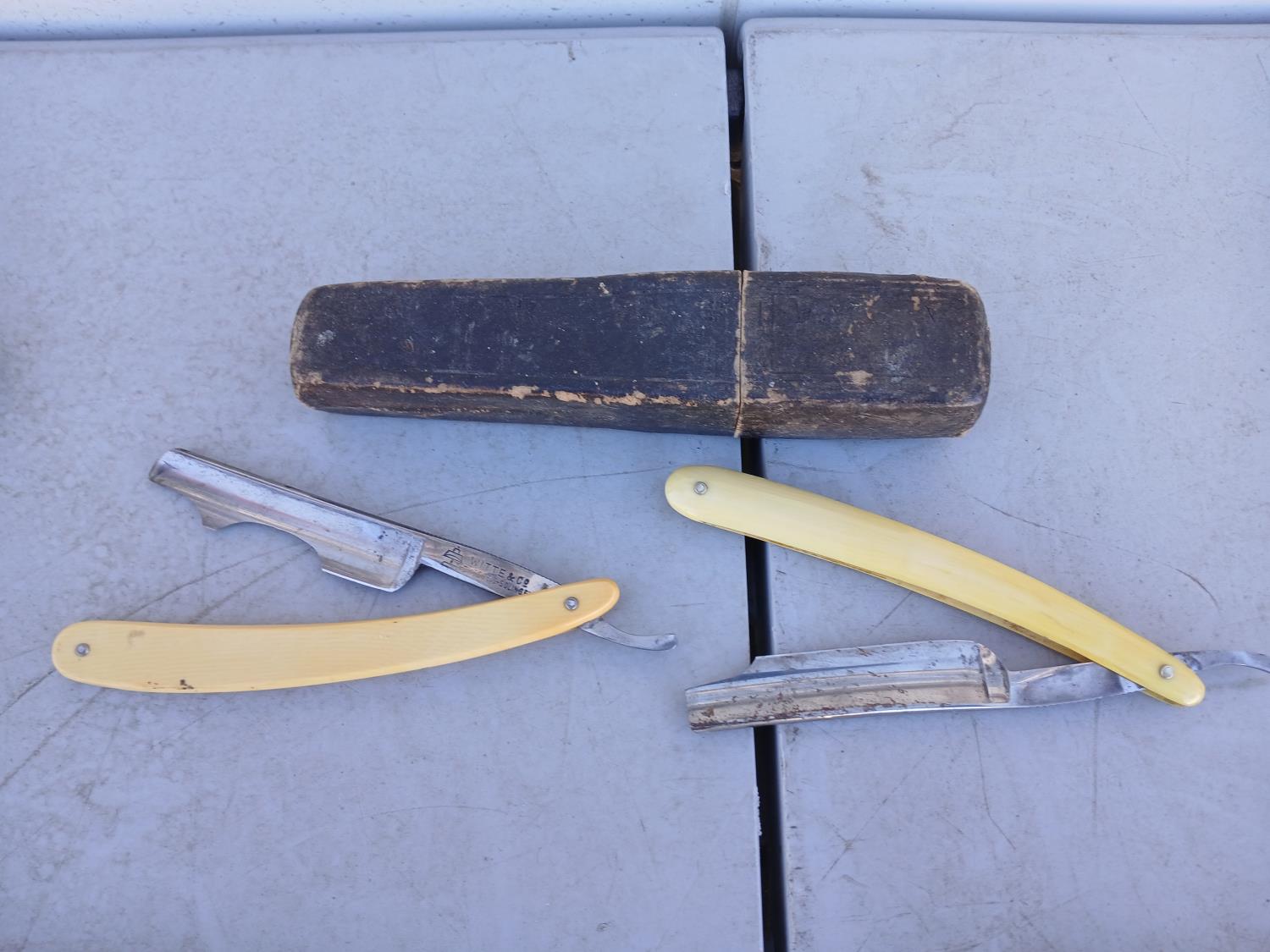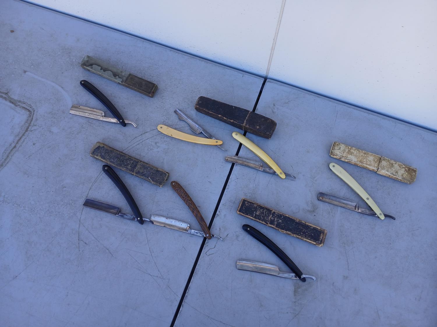 (7) collectable old straight razors, age unknown. All but one are in original boxes.